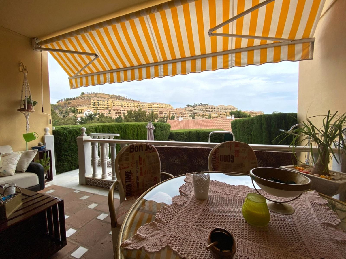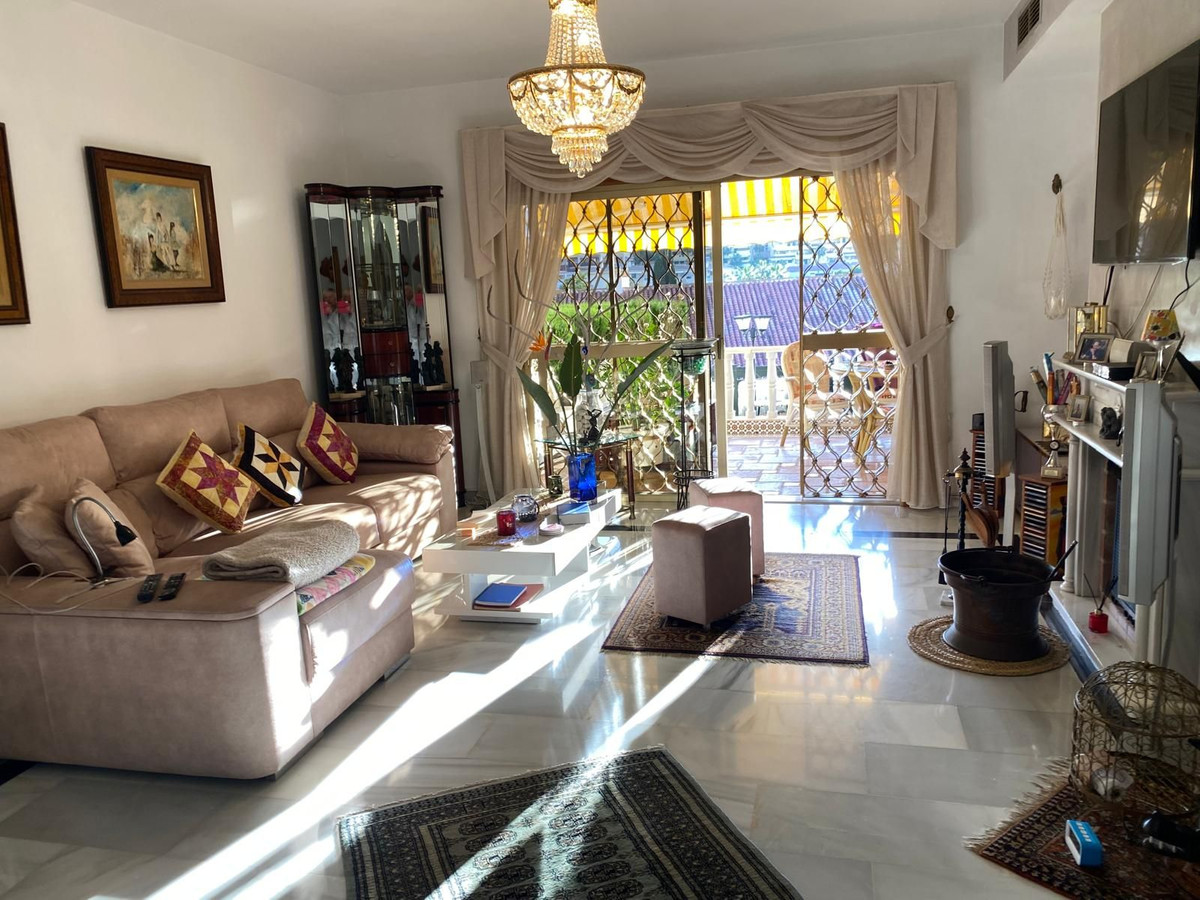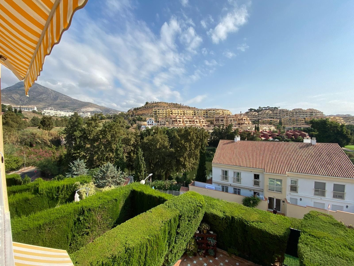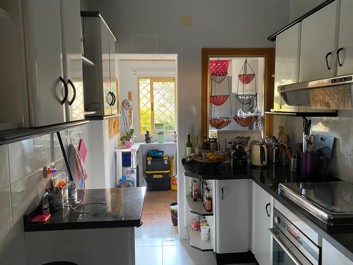 Fantastic semi-detached house in TORREQUEBRADA, in the best area of Benalmádena, in a residential development. Before entering the house, there is a small and charming garden where you can sunbathe in the afternoons. Upon entering, you enter the spacious living room with a marble fireplace that adds style and warmth, perfect for enjoying moments of relaxation. It is connected to the fully equipped kitchen by a serving hatch and a laundry area with a window. There is also a toilet on this same main floor. This home is bright as it faces east and west (morning and afternoon sun). Air conditioning and a heat pump are provided. The living room has access to a covered terrace and connects to another terrace that leads down via a staircase, where you can relax, sunbathe, and enjoy barbecues with family and friends. On the upper floor, you will find two exterior bedrooms. The master bedroom is very spacious, with a full en-suite bathroom, built-in wardrobes, and also has a terrace with beautiful panoramic views. The second bedroom is also spacious and has an en-suite bathroom. The community grounds, closed by an automated gate, offer parking for several cars. The development offers a large communal pool (semi-Olympic size, open all year round), lawns, and tropical gardens. The gardener cares for the private and communal gardens, which are included along with water usage, in the monthly community fee. The development is located in a quiet, well-connected residential area. Ideal for golf lovers, as it is very close to one of the best golf courses on the Costa del Sol (TORREQUEBRADA GOLF). Torrequebrada is home to several schools and hospitals, and is just 2 km from the beaches and several supermarkets in the area. VISITS RECOMMENDED!