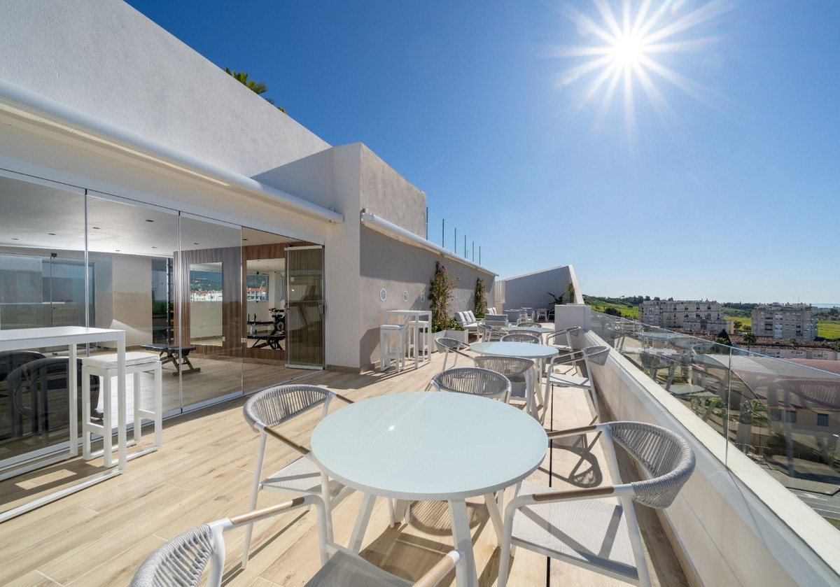Incredible opportunity in Nueva Andalucía, Costa del Sol. Enjoy the charm of purchasing a property delivered this very year, while paying only 7. This spectacular apartment offers stunning panoramic views of the sea, the city, and the future landscaped community gardens.