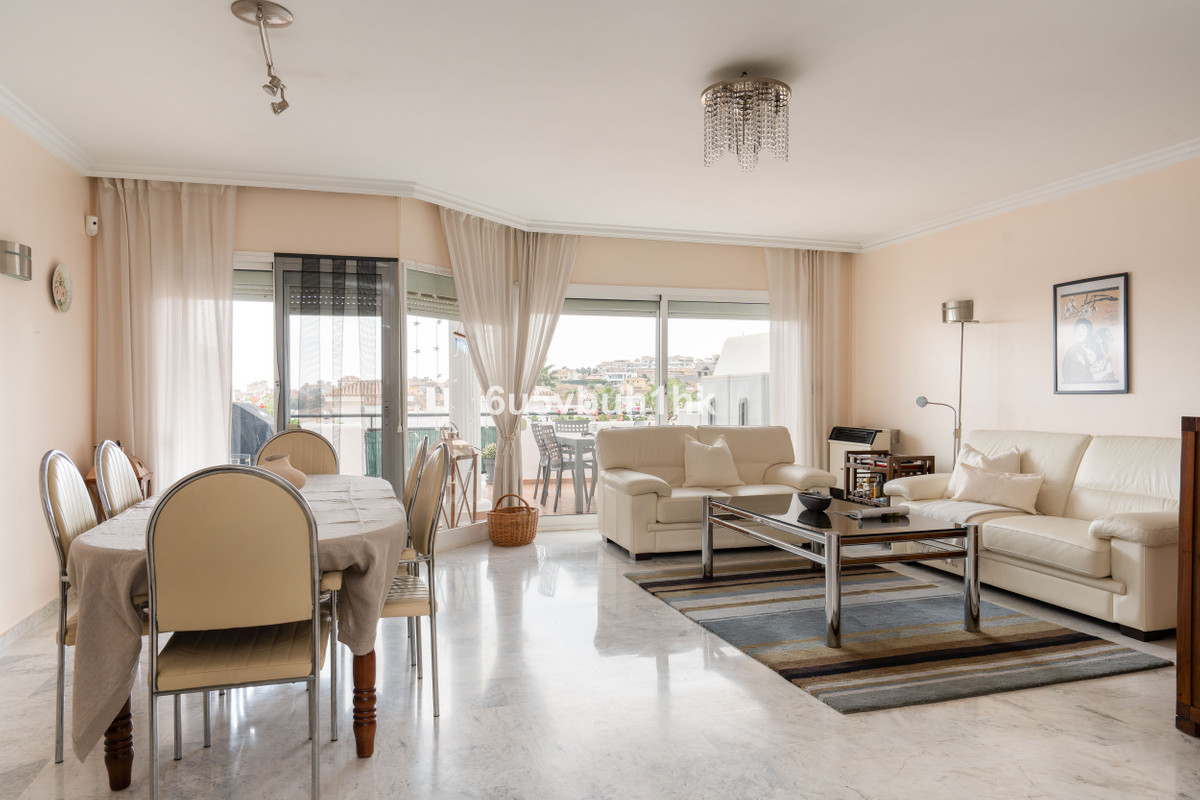 Located on a peaceful street just off Avenida de las Palmeras, this bright and well-maintained townhouse offers everything you need for comfortable family living or as a wonderful holiday home.The current owner has lived in this lovely home since it was built – a true testament to the quality of the property and the charm of its surroundings.The upper floor features three bedrooms – the master bedroom with an ensuite bathroom, and two additional bedrooms sharing another bathroom. From the upper level, you can enjoy beautiful views and stunning sunsets over the sea.The main floor welcomes you with a small gated front patio, a semi-open kitchen, and a spacious living and dining area with access to a large terrace perfect for outdoor dining and barbecues. There’s also a guest toilet on this level.On the lower floor, you’ll find two more bedrooms, a bathroom, a laundry room, and even a private sauna. From here, you can access the back patio, which can also be used as private parking.The community pool is located just across the street, and within a few minutes’ walk you’ll find a beautiful park, excellent public transport connections, and all local services. The beach is only a 7-minute walk away, and the lively center of Arroyo de la Miel just 10 minutes.A well-cared-for family home with a fantastic location, great layout, and the perfect mix of comfort and convenience.