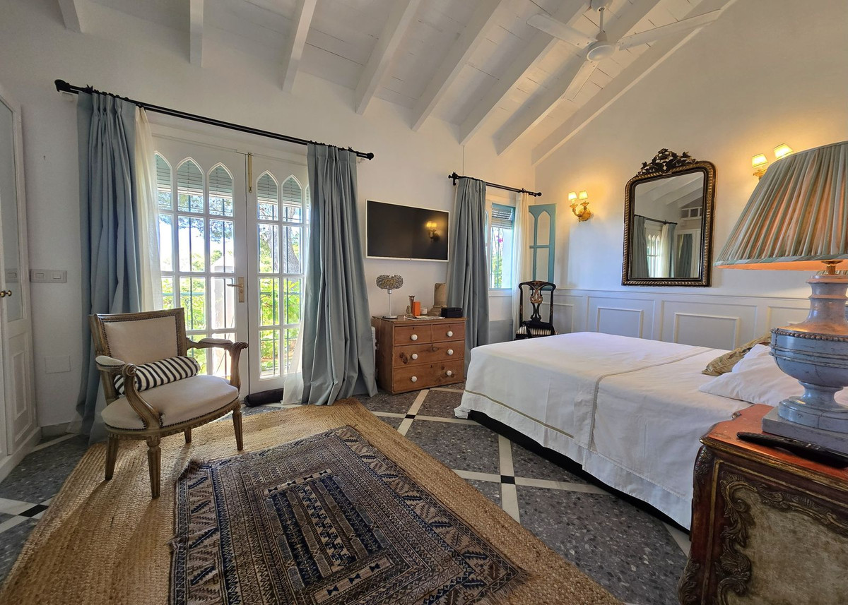 Set amidst fragrant pine trees in the prestigious Montúa area, just above Marbella at the foot of the majestic La Concha mountain, this charming single storey cortijo-style villa perfectly blends traditional Andalusian character with modern comforts.