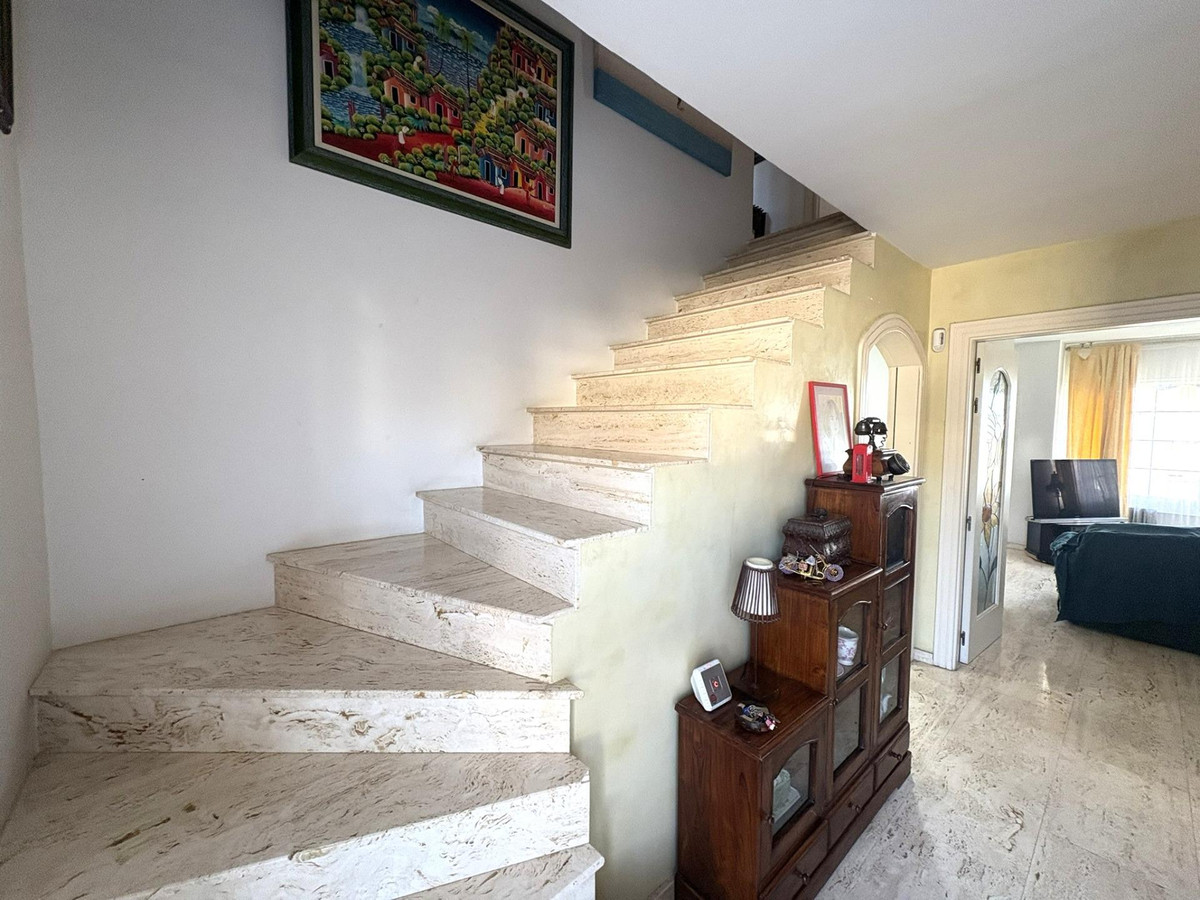 The property is distributed over two floors. The upper floor features three bright and spacious bedrooms, ideal for rest and comfort. On the ground floor, you’ll find a large entrance hall that welcomes you with elegance, highlighted by Roman travertine marble floors throughout, adding a classic and distinguished touch.