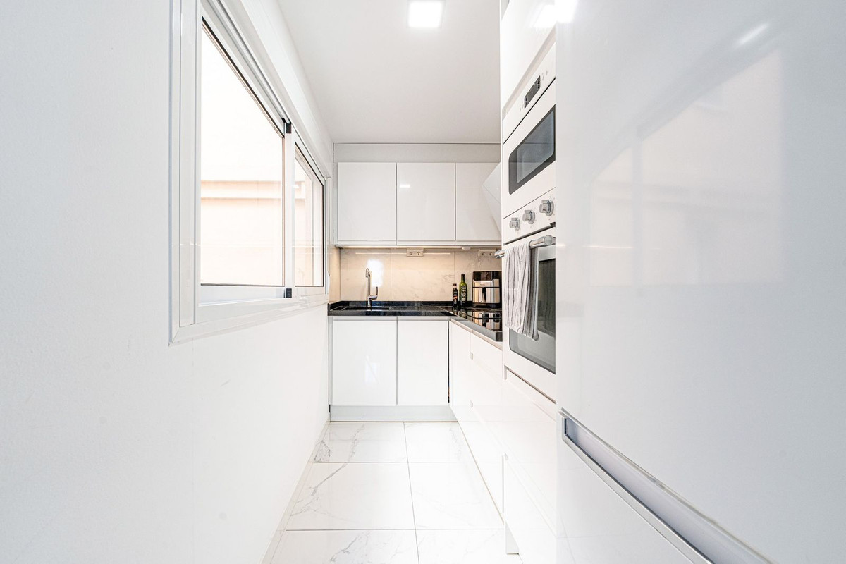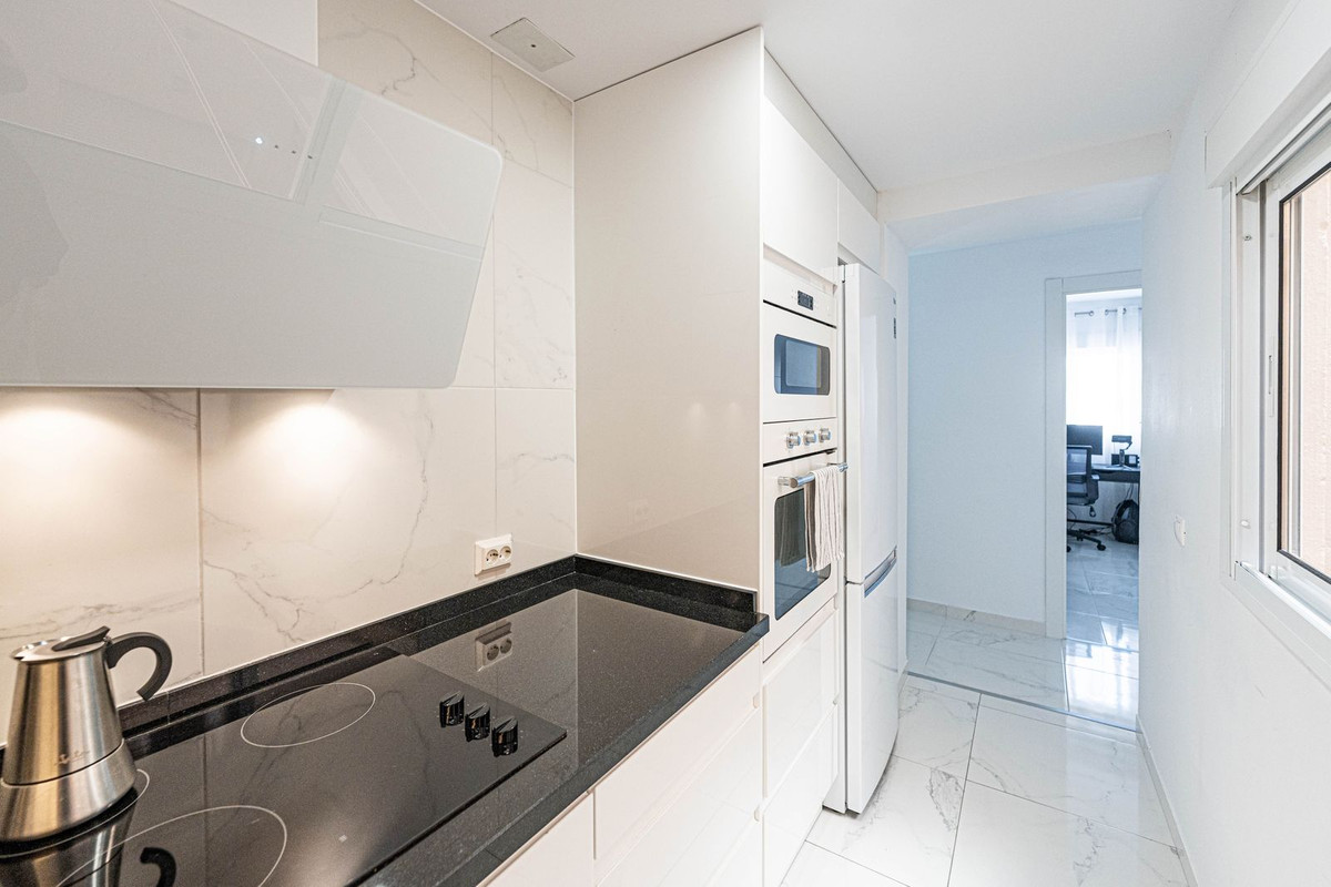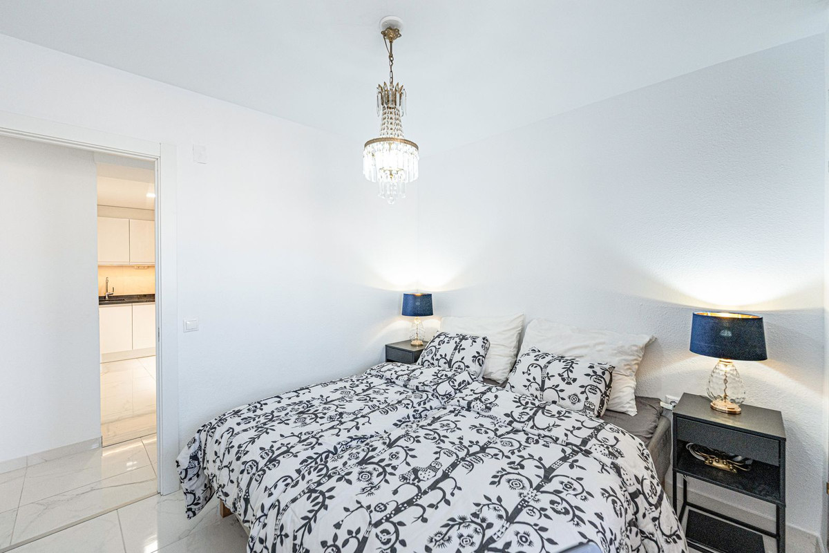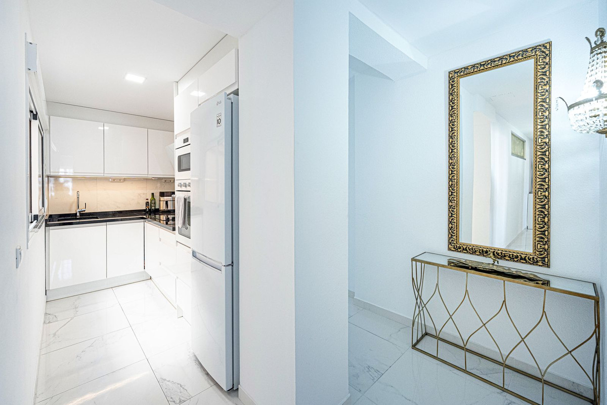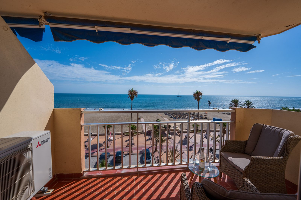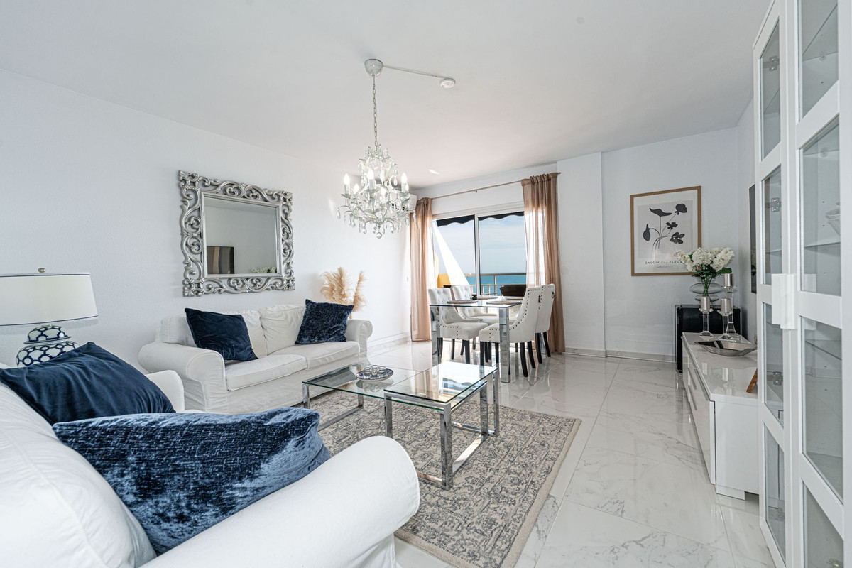 The apartment, which has just been fully and completely renovated, measures 90 m2. The kitchen has been completely renovated and equipped, and features new, high-quality built-in appliances and stone countertops. The spacious and bright living room has space for a dining table. The living room also has access to a large terrace that opens directly onto the sea. The two spacious and peaceful bedrooms have built-in wardrobes and views of the Mijas mountains. The elegant bathroom has also been recently renovated.