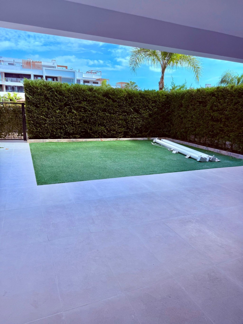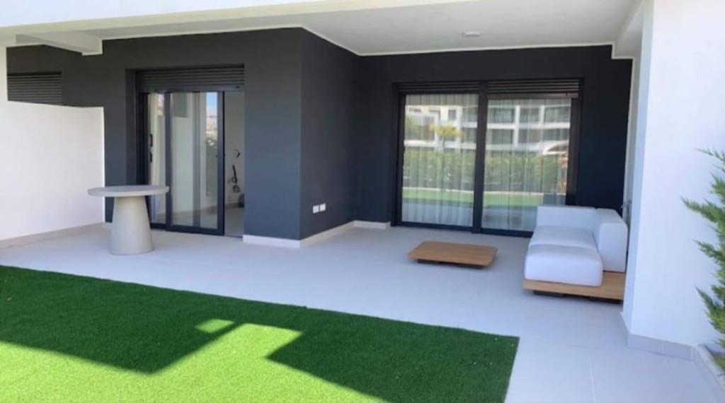 Beautiful 2bed 2bath ground floor apartment with large private garden two terraces in Cancelada, in immaculate condition. Undeground parking and storage room included in the price. Beautiful communal garden with pool. Walking distance to amenties and beach.