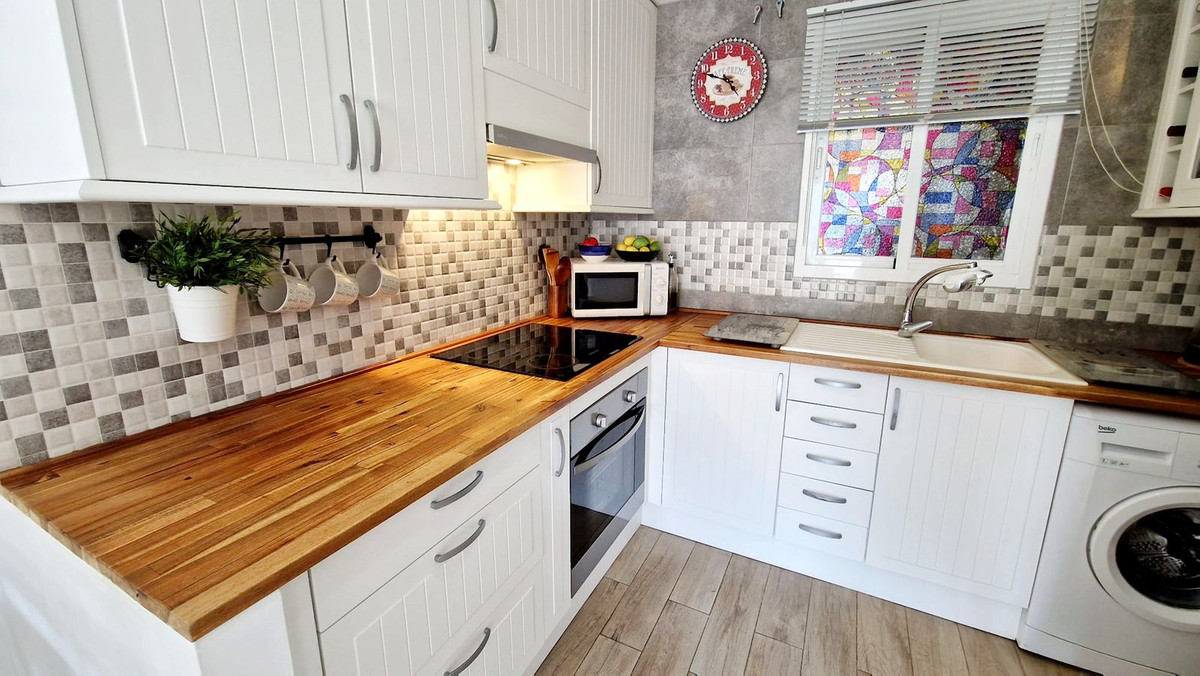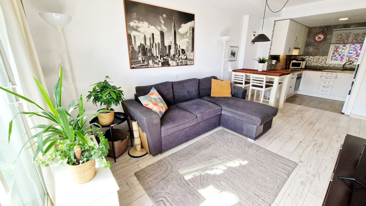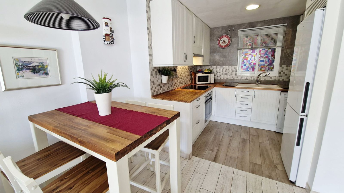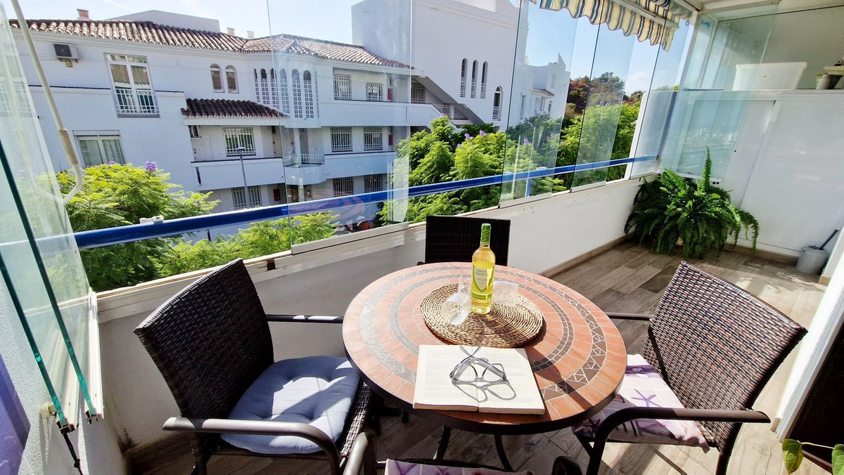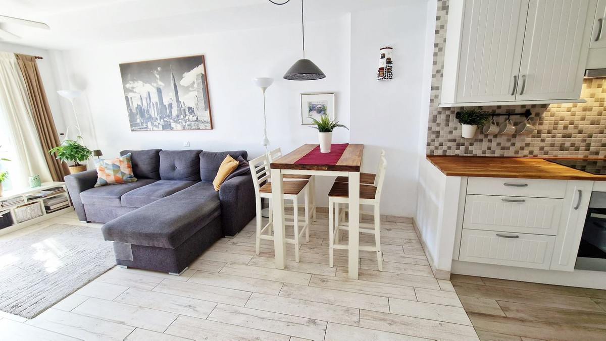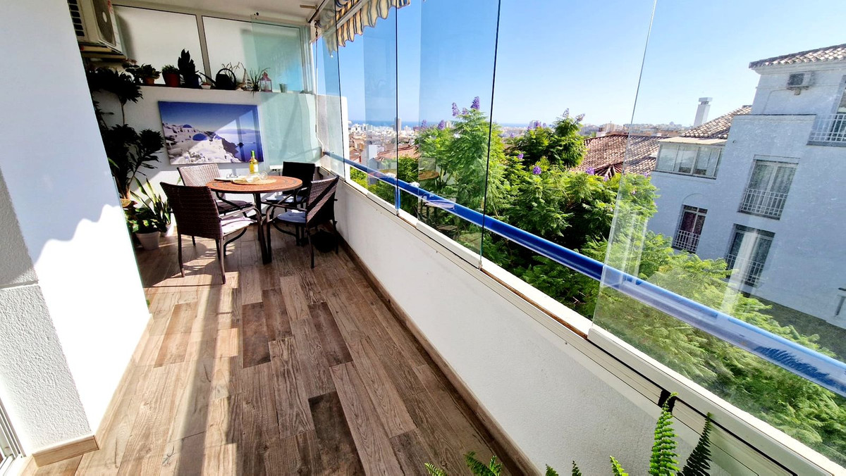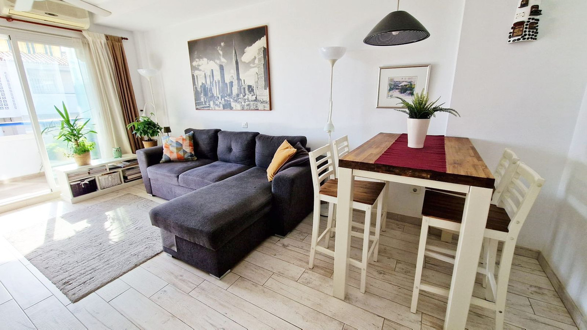 Beautifully renovated one-bedroom apartment for sale in lower Los Pacos, within walking distance to shops, restaurants, and public transport. This bright and sunny home features a spacious terrace with glass curtains and lovely sea views — perfect for year-round enjoyment.