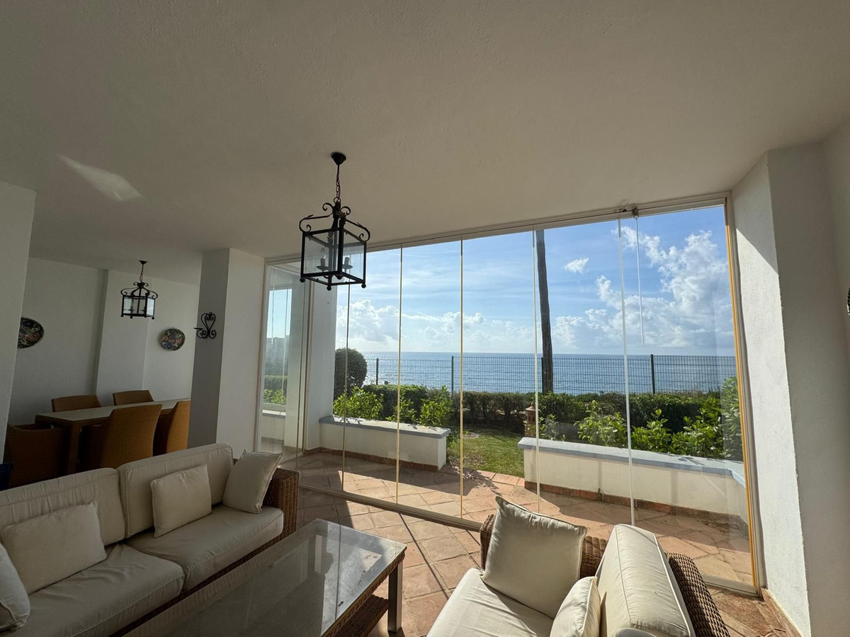 Beautiful 3-bedroom ground floor apartment facing the sea, located in one of the best residential areas in the area. A high-quality, fully furnished flat. The living/dining room has a fireplace, is very bright and opens onto a covered glassed-in terrace of over 60m² with spectacular sea views. The kitchen is separate and also enjoys the views, as does the master bedroom with its en-suite bathroom.