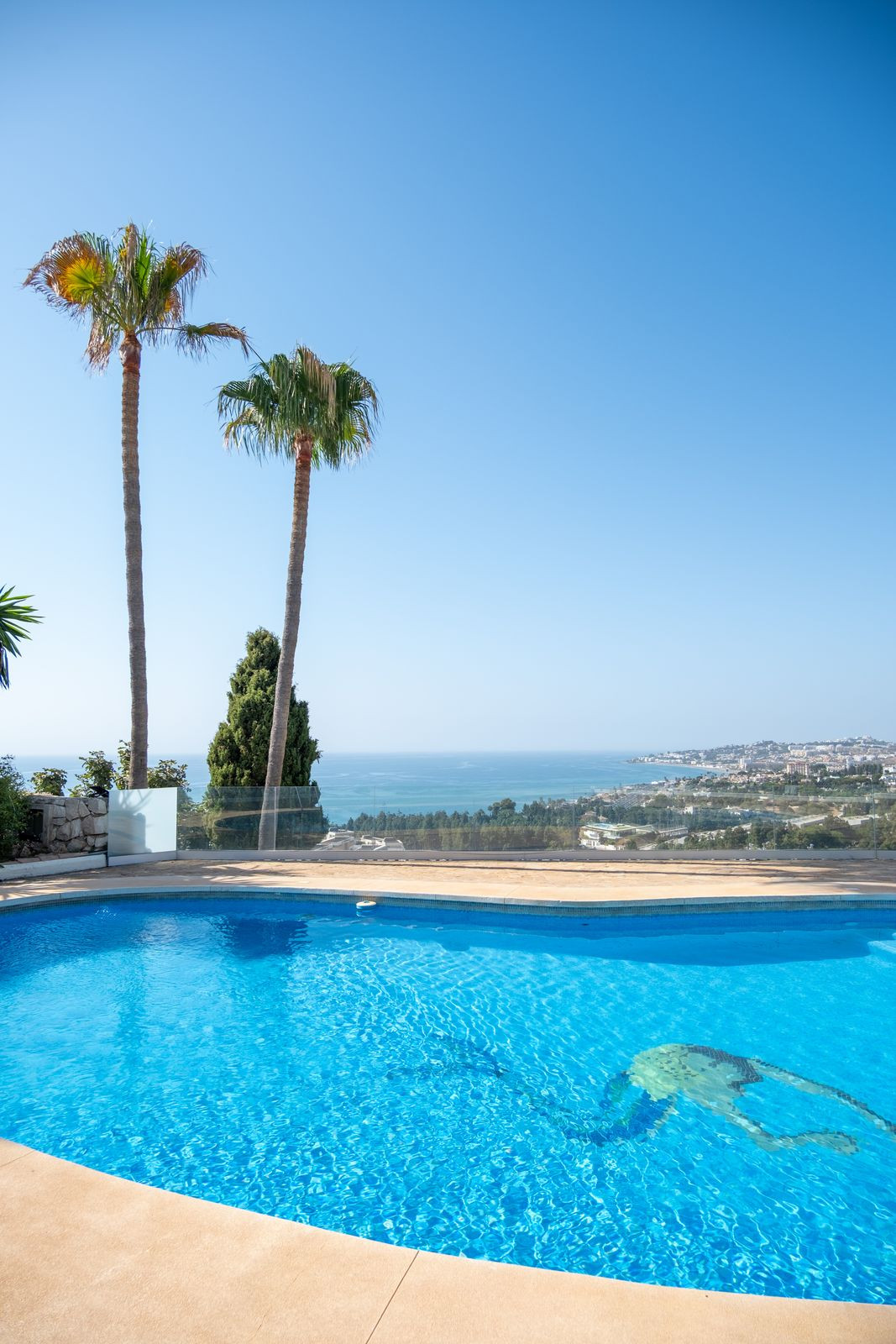 The plot offers beautifully landscaped gardens and has a large swimming pool next to a separate swim-up bar, sunny terraces and incredible views.