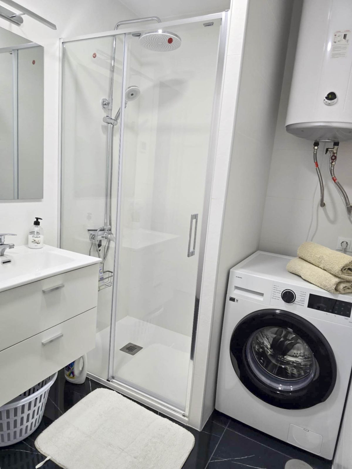 The property has been completely refurbished, featuring a brand-new kitchen with modern appliances and a stylish breakfast bar, as well as a brand-new bathroom finished to a high standard. The floors have been entirely redone, and the apartment now benefits from underfloor heating throughout for year-round comfort. In addition, a new hot and cold air-conditioning system has been installed.
