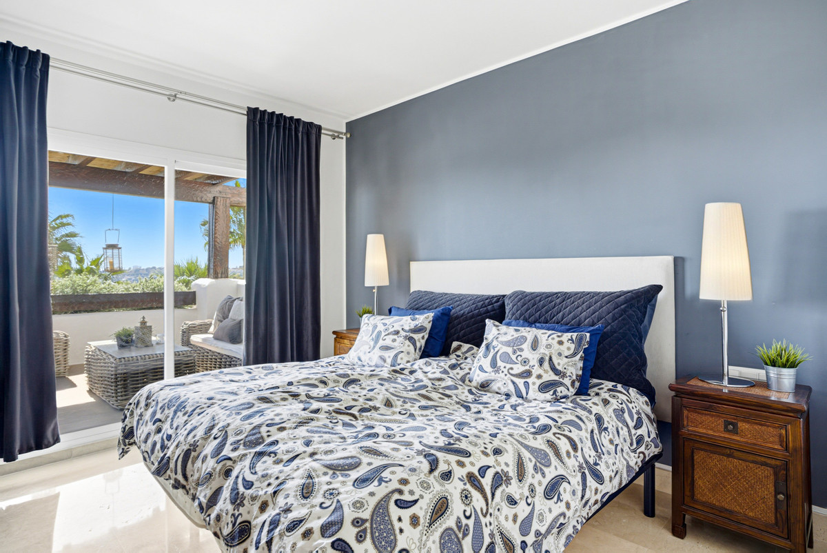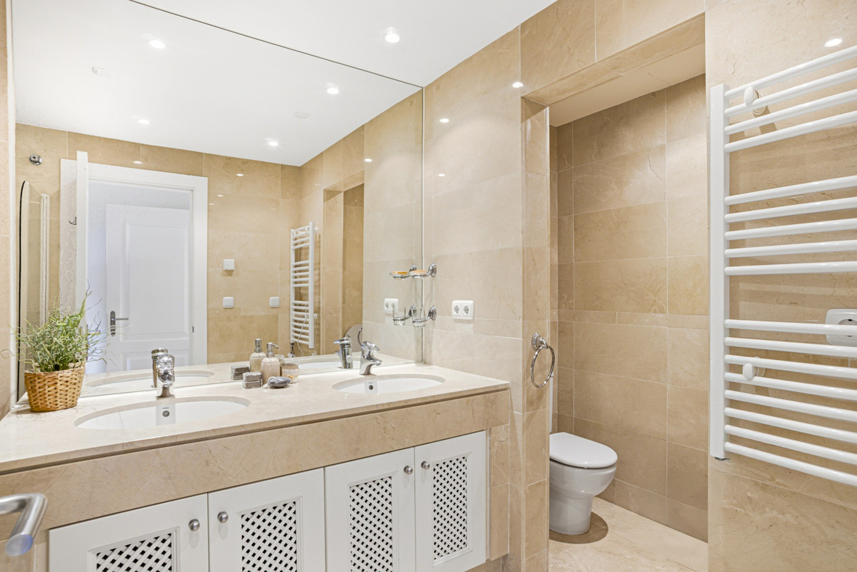 Wonderful two-bedroom, first floor apartment located in the sought-after gated community of Las Tortugas, Nueva Andalucía. Recently renovated and beautifully decorated, this property offers a perfect combination of Andalusian charm and modern comfort. The community boasts a large communal swimming pool surrounded by landscaped gardens with stunning sea views. Located in a tranquil and private setting in the heart of Nueva Andalucía, it is just a short drive to shops, restaurants, international schools, and Puerto Banús. The complex is also surrounded by several renowned golf courses, making it ideal for golf enthusiasts. The property has an open plan living and dining area with access to a spacious south-facing terrace; fully fitted kitchen; master suite with terrace access; guest bedroom; and guest bathroom. Other features include hot and cold air conditioning, marble floors, fitted wardrobes, a private parking space, and a storeroom.