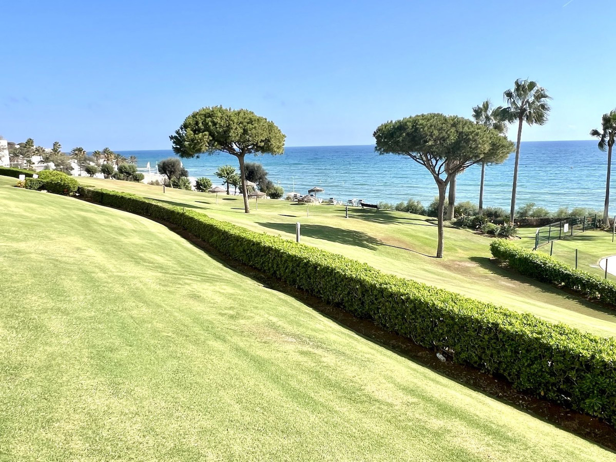 We exclusively offer this beachfront apartment in one of the most beautiful spots on the coast. This complex features an indoor pool, gym, tennis courts, paddle tennis courts, direct access to the beach, and two fabulous pools.