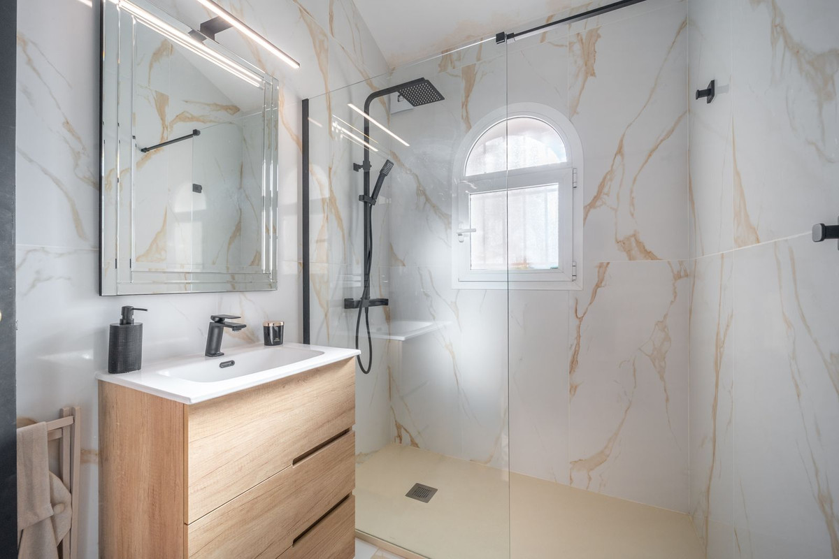 On the first floor you will find the master bedroom and bathroom with a terrace and even better views towards the Mediterranean sea.