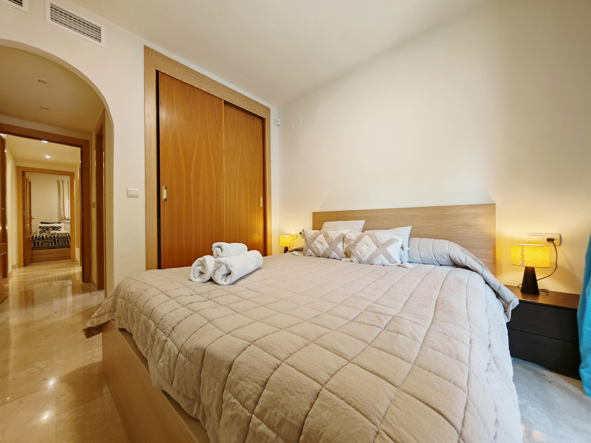 Apartment for sale in , Mijas Costa with 2 bedrooms, 2 bathrooms and with orientation east, with communal swimming pool, private garage (1 parking spaces) and communal garden. Regarding property dimensions, it has 93 m² built, 79 m² interior and 15 m² terrace. Has the following facilities amenities near, air conditioning, fully fitted kitchen, guest room, storage room, kitchen equipped, living room, covered terrace, fitted wardrobes, gated community, lift, close to children playground, good condition, urban view, close to shops, close to town and close to schools.