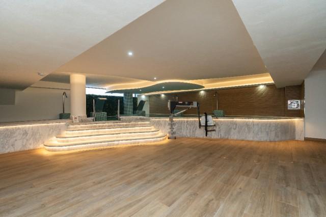 caractéristiques Style contemporain, Zone vertes, Gymnase, Piscine couverte et climatisée, Jacuzzi, sauna.