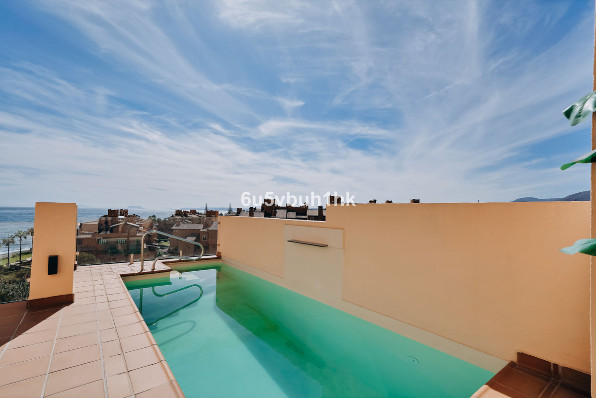 Discover this spectacular 3-bedroom, 3-bathroom duplex penthouse, located in the prestigious Bahía de la Plata development, right on the beachfront in Estepona. A truly unique property that combines luxury, comfort, and an unbeatable setting with breathtaking views of the Mediterranean Sea and the Rock of Gibraltar.