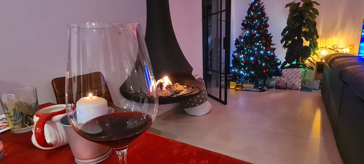 Spacious living-dining room that connects directly to a semi-open kitchen and leads to a covered seating area where you can enjoy the views even from an integrated jacuzzi. The suspended fireplace and décor create a very sophisticated atmosphere.
