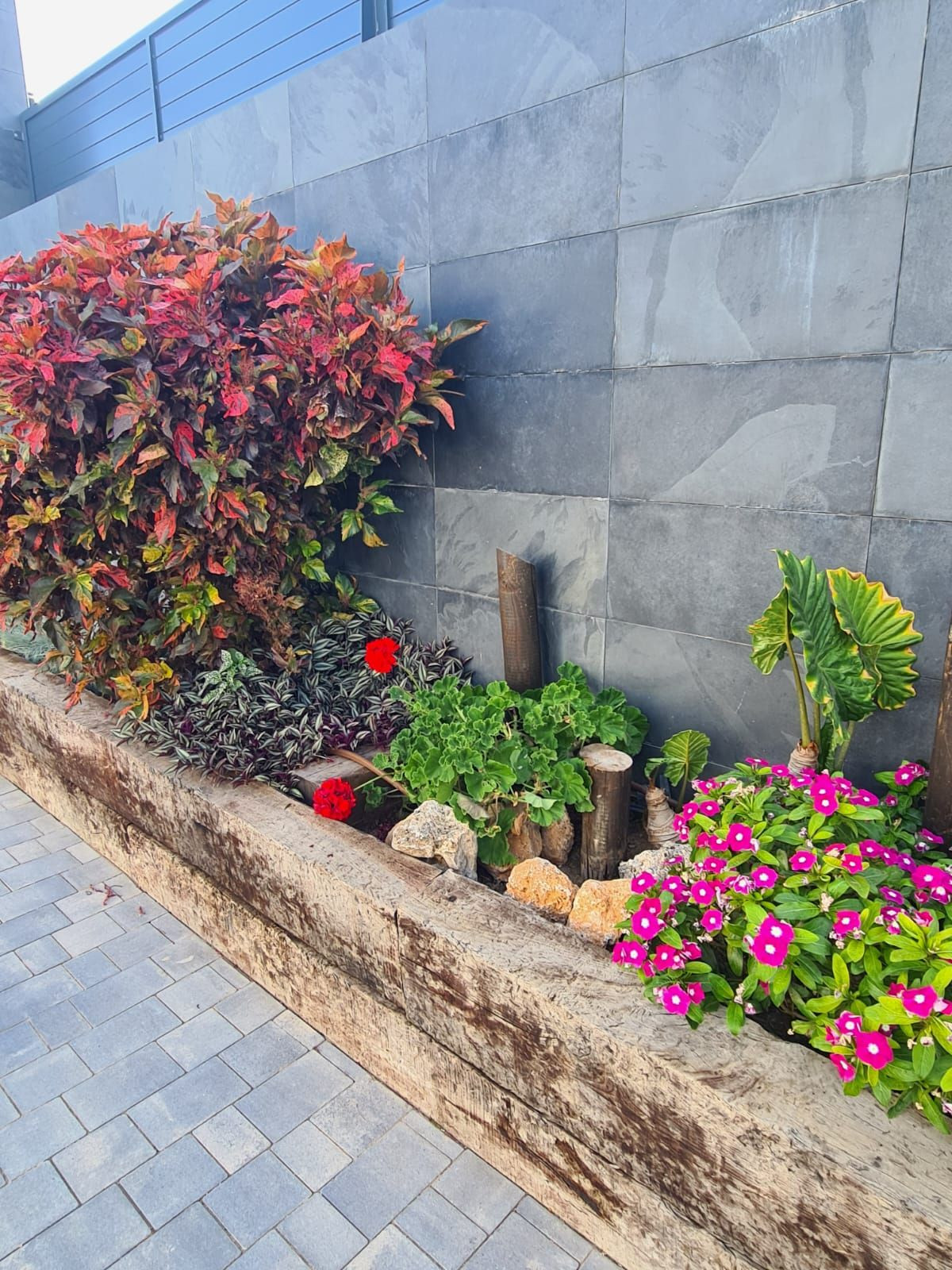 Exceptionally well-kept garden with palm trees.