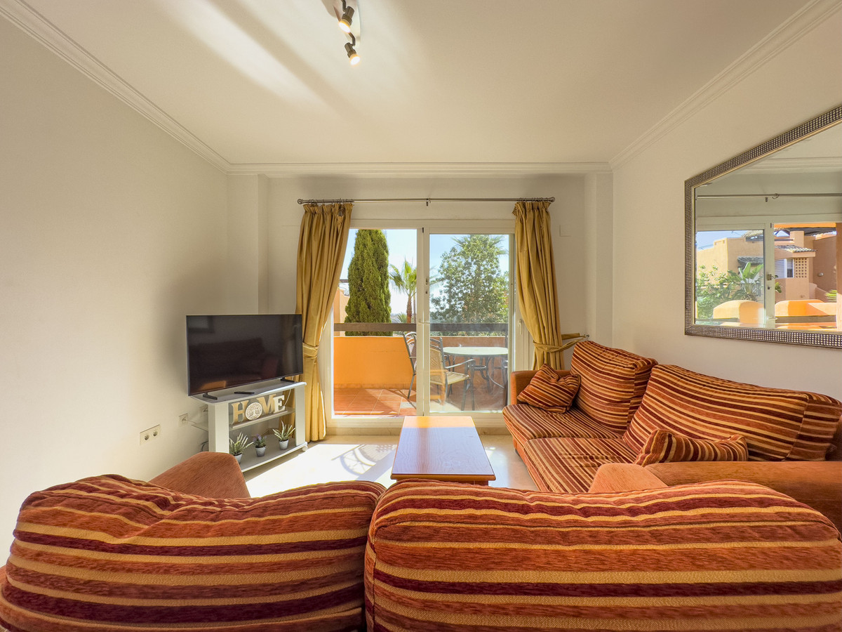 Appartement exclusif au rez-de-chaussée avec terrasse, vue mer partielle et sécurité 24h/24 à Casares Golf
