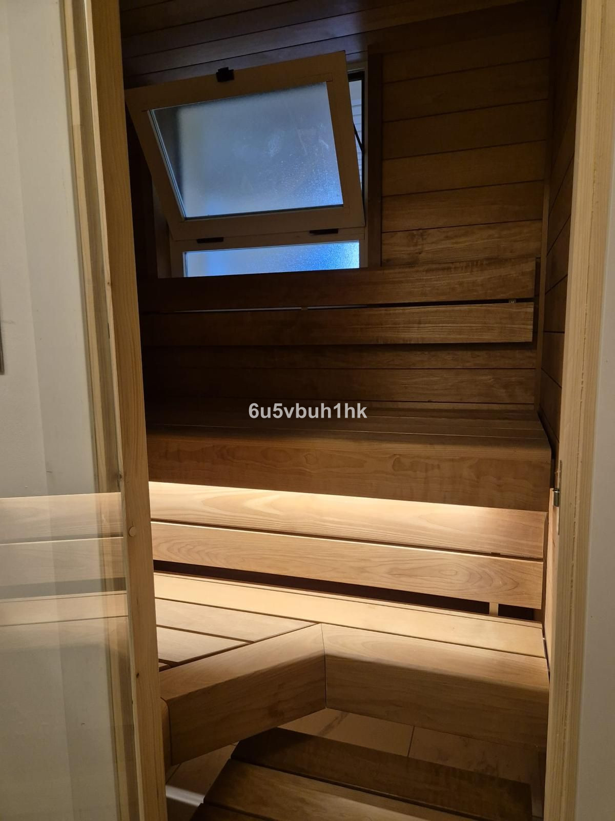 Ce charmant appartement se situe dans la prestigieuse résidence Myramar del Sol à Mijas Costa, à quelques centaines de mètres de la mer. Myramar del Sol est réputée pour ses jardins magnifiquement entretenus, son atmosphère paisible et son architecture de grande qualité. Le quartier offre un cadre verdoyant et sécurisé où vous pourrez profiter du soleil espagnol toute l'année – un parfait mélange de confort et d'élégance. La surface totale est de 129 m², espaces extérieurs compris. L'appartement comprend : Salon et salle à manger Deux chambres Cuisine et couloir Salle de bains et sauna privé Terrasse et petit balcon La terrasse du jardin privé offre à la fois intimité et confort – avec un espace carrelé et couvert, entouré de portes vitrées, une jolie pelouse et de magnifiques murs en pierre créant une ambiance sereine. L'espace piscine de la résidence est vraiment exceptionnel : une oasis luxuriante entourée de palmiers, avec des étangs, des poissons et même des tortues. Une place de parking souterraine est incluse. Une maison qui enchante au quotidien comme en vacances – venez en tomber amoureux !