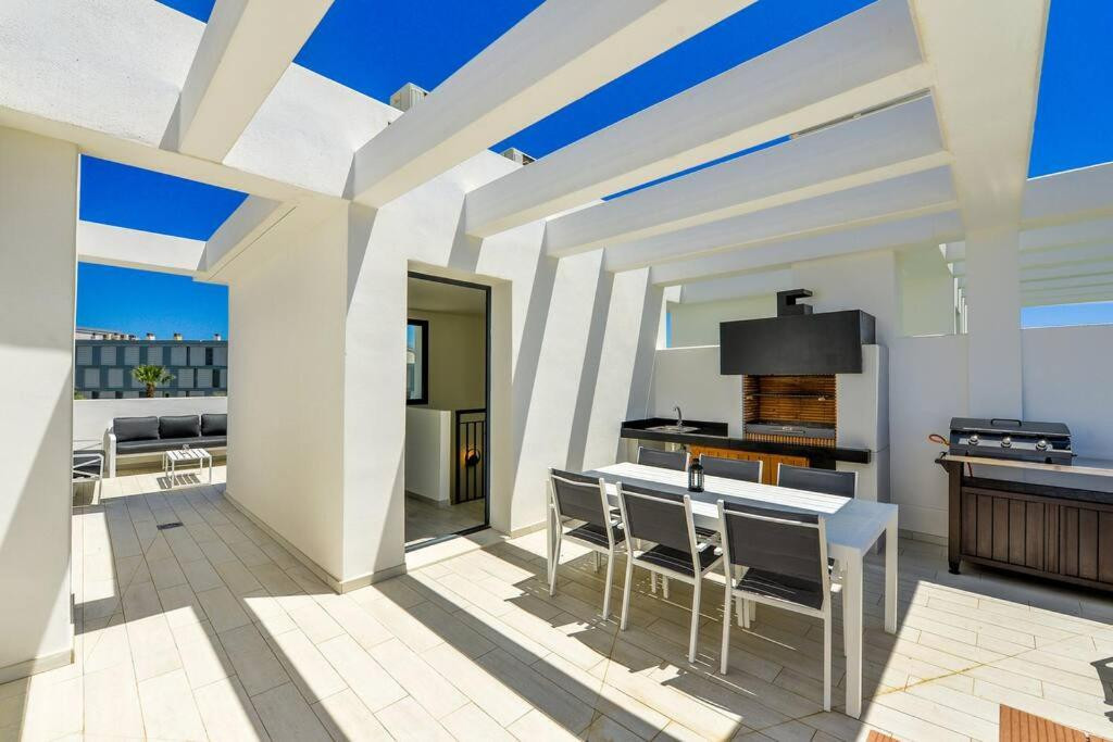 Avec 139 m² de surface habitable, cette propriété offre trois chambres spacieuses, chacune avec sa propre salle de bains privative, ainsi que de superbes espaces extérieurs : des terrasses ensoleillées, un jardin privé et un solarium offrant un point de vue unique sur la mer et Gibraltar.
