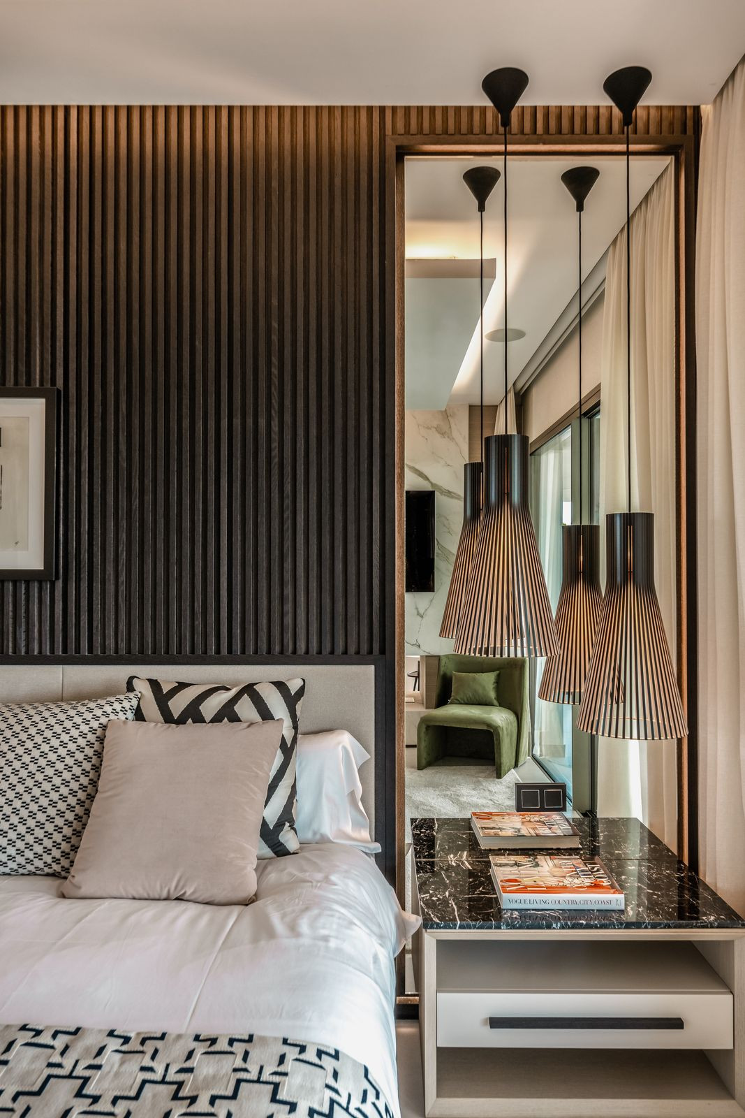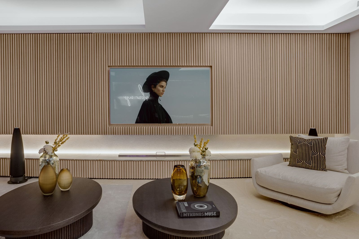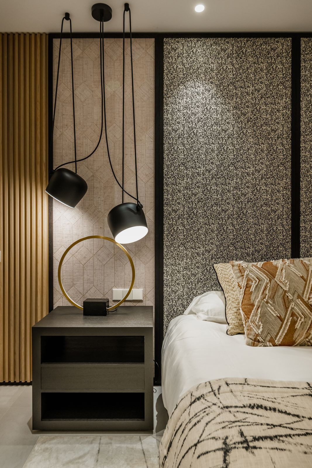 Extérieur géométrique et matériaux naturels chics aux tons apaisants