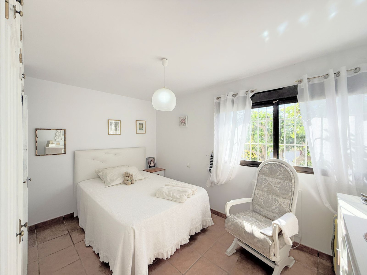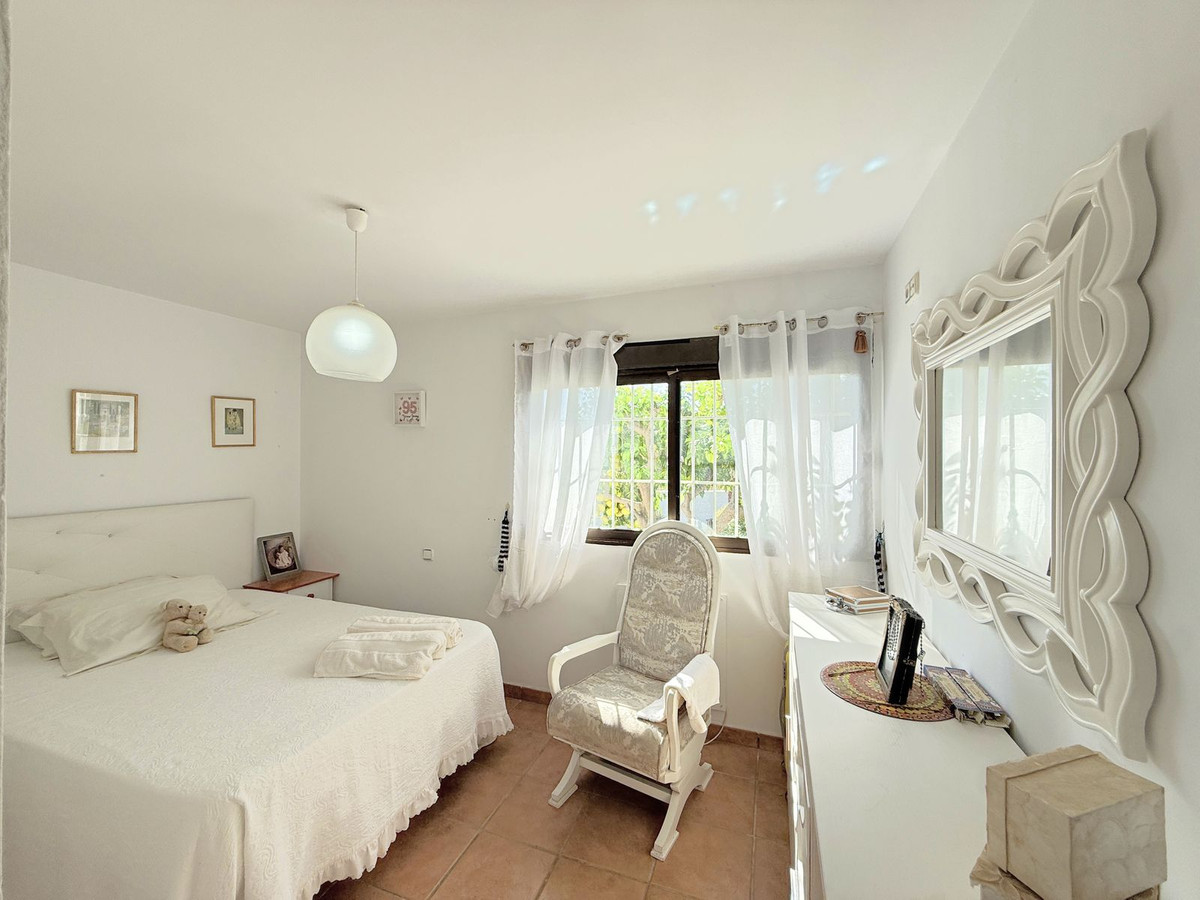 Au niveau inférieur se trouvent deux chambres spacieuses et une salle de bains complète. De là, vous accédez à un charmant jardin privé d'environ 90 m², agrémenté d'arbres matures et d'une végétation soignée qui offrent ombre, fraîcheur et une merveilleuse sensation d'intimité et de tranquillité.