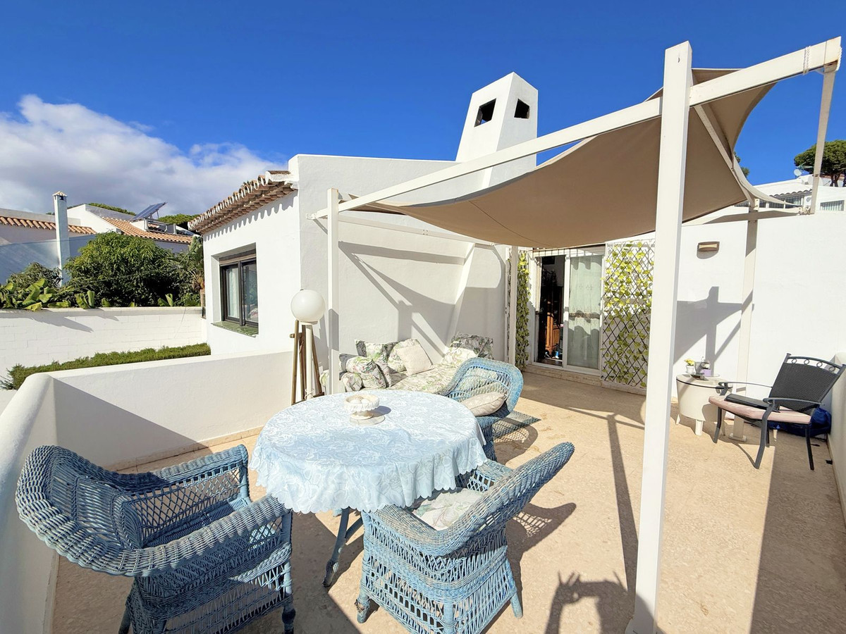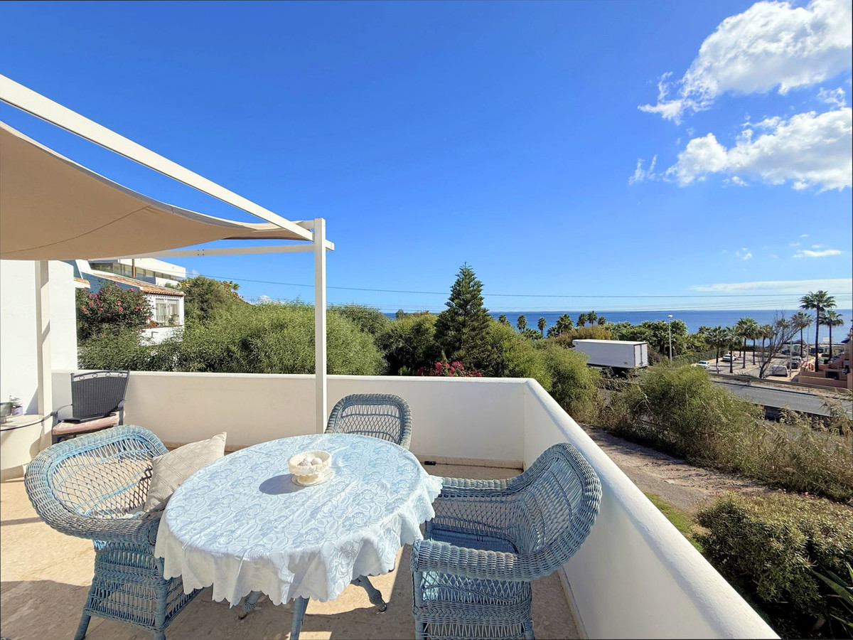 La propriété est répartie sur deux niveaux. Dès l'entrée, un charmant patio vous accueille et mène au rez-de-chaussée, qui comprend un salon lumineux, une cuisine indépendante et une terrasse offrant une agréable vue sur la mer – idéale pour se détendre et profiter du calme environnant.