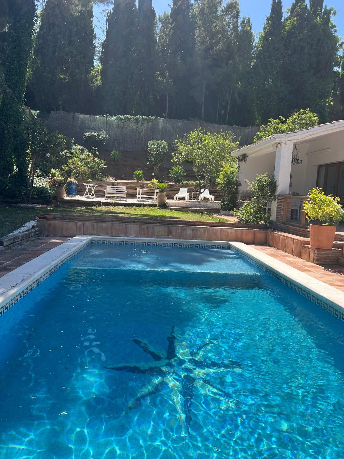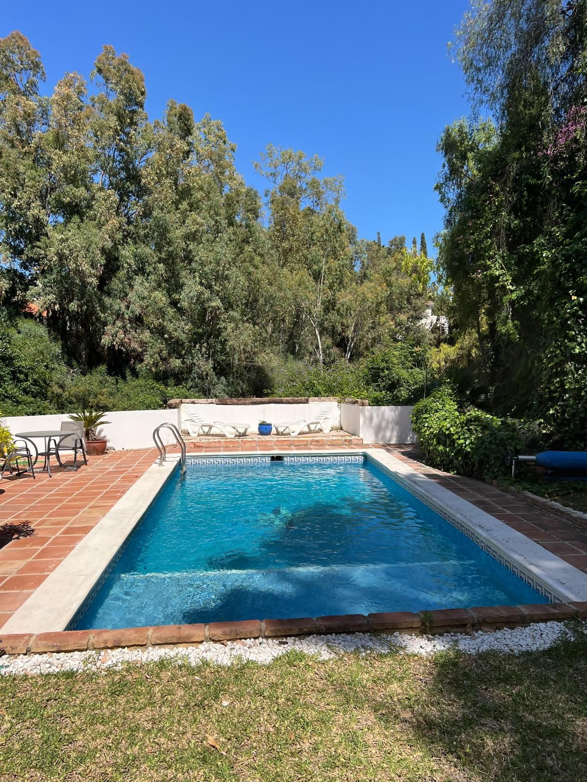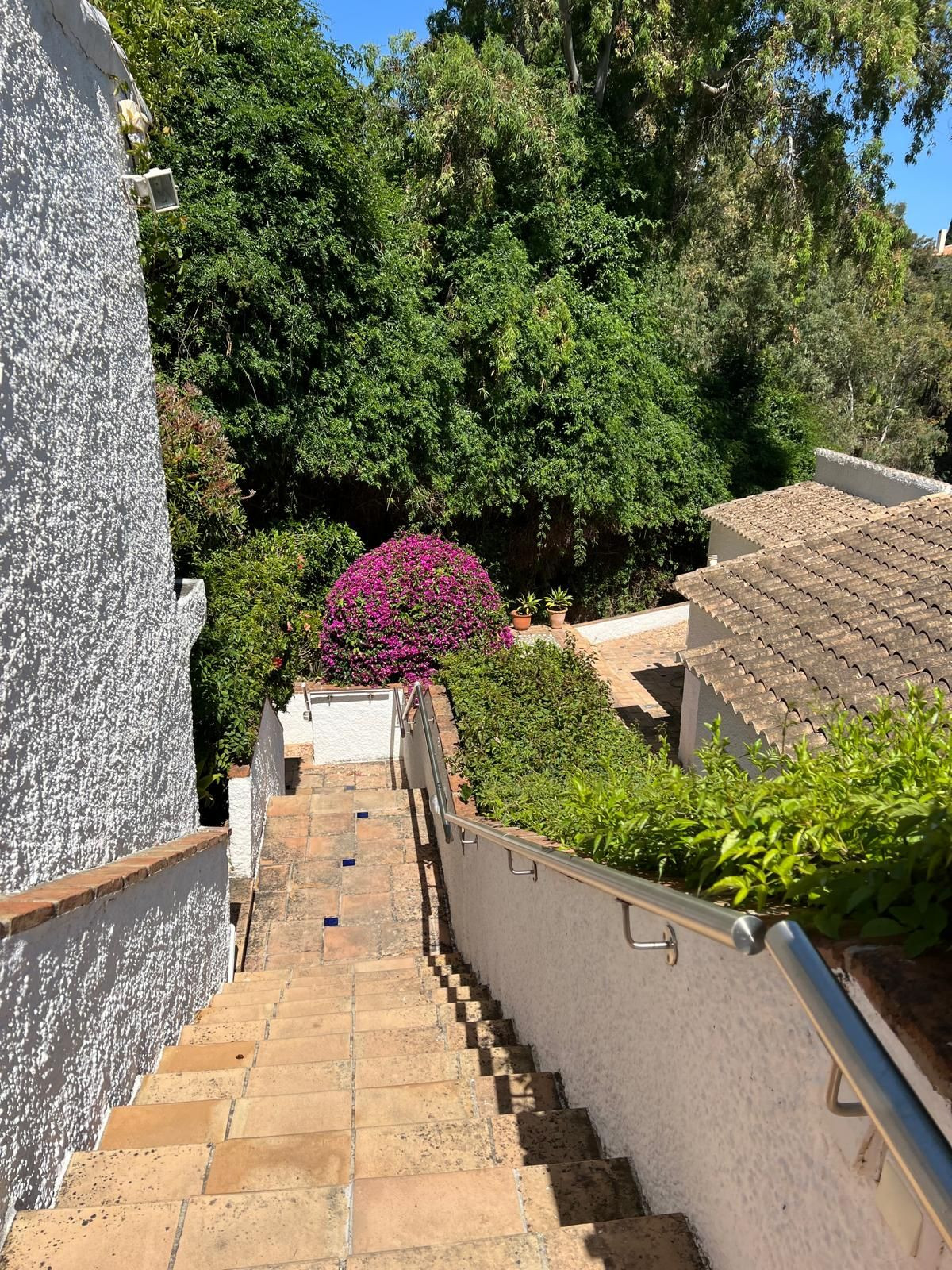 Le jardin paysager est conçu pour un entretien facile et une intimité totale. La piscine privée offre un cadre idéal pour se détendre et profiter du soleil de la Costa del Sol en toute tranquillité.