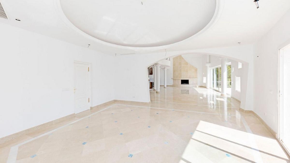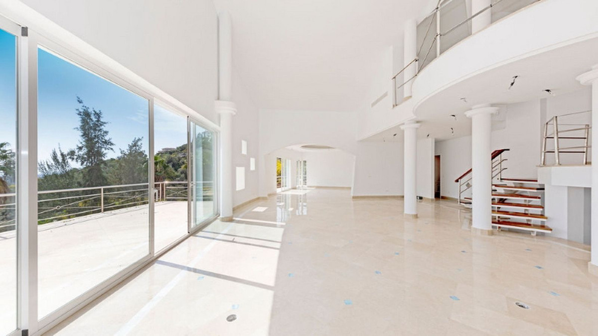 Maison individuelle située dans l'urbanisation El Almendro, à Benahavís. D'une superficie de 1 383 m² répartie sur quatre niveaux, elle comprend au rez-de-chaussée un vaste séjour, une salle à manger, une cuisine, un couloir d'accès au hall d'entrée, deux chambres avec salles de bains privatives et deux terrasses. L'étage supérieur, accessible depuis la rue par un porche d'entrée, se compose d'un hall d'entrée, d'un couloir, d'une chambre avec dressing, d'une salle de bains et d'une terrasse. Le demi-sous-sol abrite un garage spacieux pouvant accueillir plusieurs véhicules, une salle de jeux et deux chambres avec salles de bains privatives. Le sous-sol comprend un espace bar, un dressing, une salle de jeux et une salle de bains. La propriété s'étend sur un terrain de 3 868 m² comprenant un porche d'entrée, un parking et un grand jardin privatif avec piscine et jacuzzi, offrant une vue sur la mer. Elle est équipée de placards intégrés, d'une cuisine aménagée, d'une cheminée et d'une pré-installation pour la climatisation. Située dans un quartier résidentiel calme, à proximité de plusieurs terrains de golf.