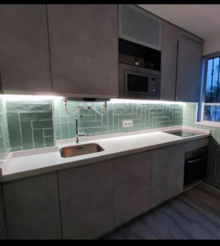 L'électricité et la plomberie ont été changées, ainsi que la salle de bain, la cuisine, les portes intérieures et les portes des placards intégrés, et un revêtement de sol stratifié imitation bois a été installé dans tout l'appartement sauf dans la salle de bain qui est en porcelaine.