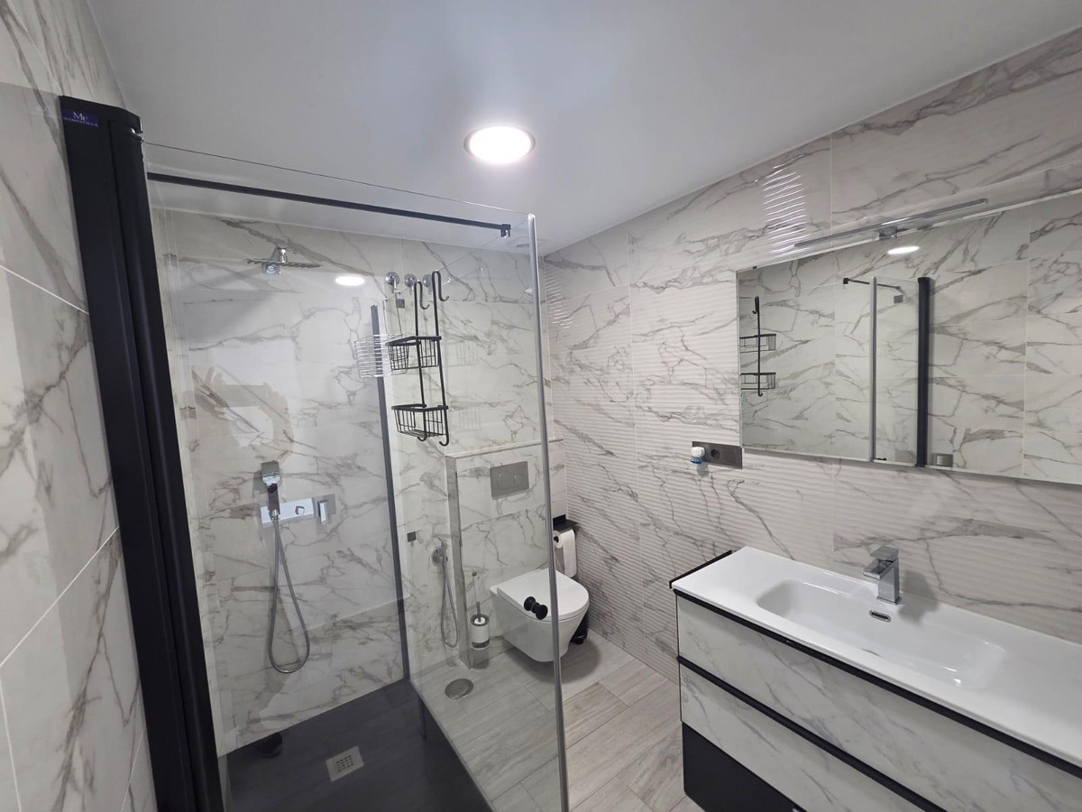 Matériaux haut de gamme : sols en porcelaine imitation bois, portes blanches, fenêtres à double vitrage Climalit assurant une isolation thermique et acoustique, et barreaux de sécurité pour une protection renforcée. Installations électriques et de plomberie entièrement refaites.