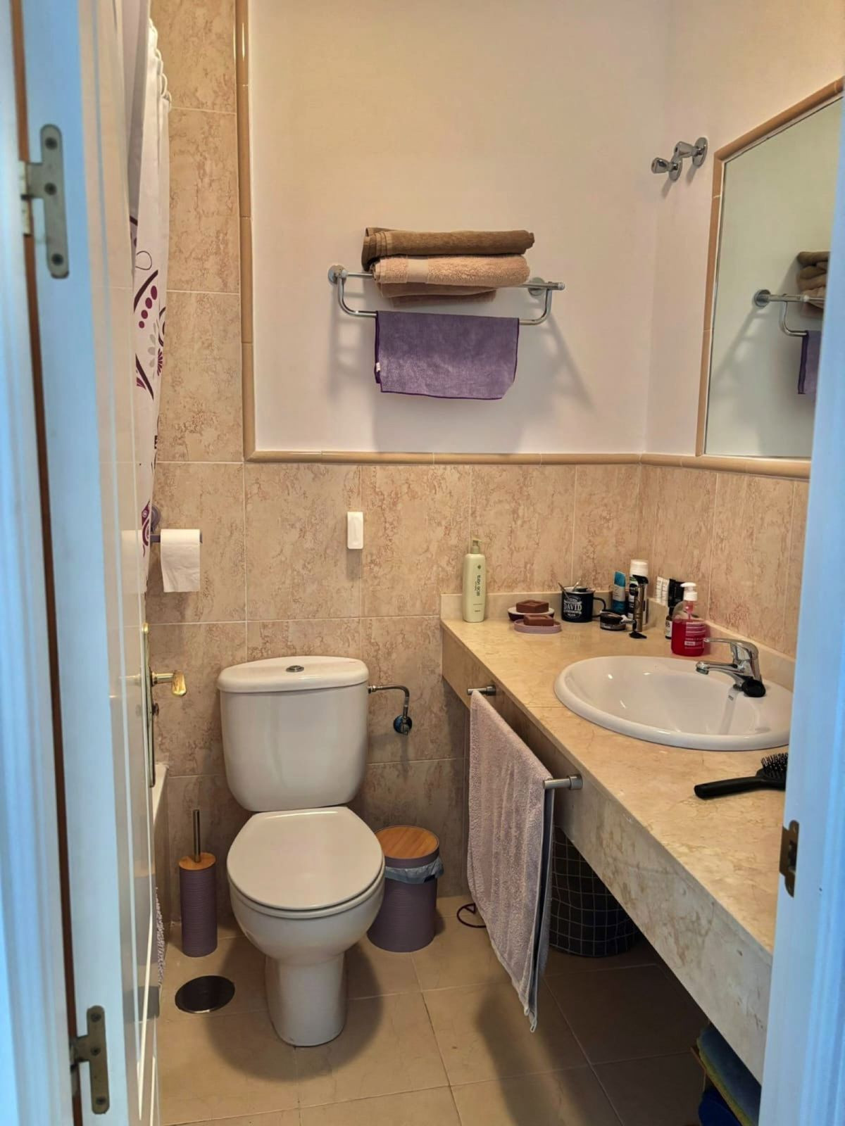 Répartie sur trois niveaux avec un accès flexible par le premier ou le deuxième étage, cette maison de 107 m² (89 m² habitables) exposée plein sud est en superbe état. Elle offre un sol en marbre et des vues spectaculaires. Le premier étage comprend deux chambres spacieuses avec placards intégrés, climatisation et salles de bains privatives. Ces deux chambres donnent sur une terrasse commune qui mène directement aux piscines de la résidence, idéales pour la baignade. Un large couloir dessert une troisième pièce polyvalente, parfaite comme suite d'invités ou bureau. Ce niveau comprend également un espace de rangement dédié, relié à un garage privatif avec rangements intégrés, ainsi qu'un placard sous l'escalier. Au deuxième étage, une cuisine indépendante et entièrement équipée avec de nombreux rangements vous attend, ainsi qu'un séjour/salle à manger lumineux avec climatisation et cheminée. Cet espace s'ouvre sur une grande terrasse offrant une vue imprenable. Des stores permettent d'en profiter toute l'année ; la terrasse est actuellement aménagée en espace barbecue. Un escalier en colimaçon mène à un solarium privé sur le toit, offrant un potentiel immense pour la détente. Un vestiaire permet aux visiteurs d'avoir leurs toilettes sans accéder aux espaces privés.