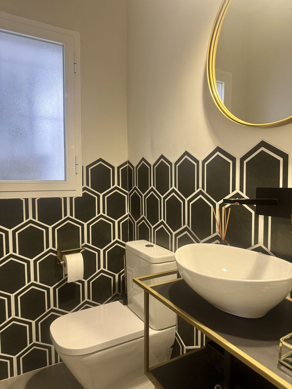 Rez-de-chaussée : hall d’entrée, salon, salle à manger séparée, trois chambres, dont deux avec salle de bains, toilettes invités, patio et véranda exposée au sud avec vue sur la mer.
