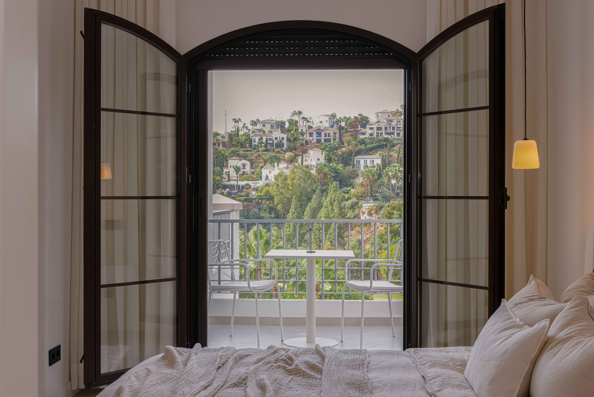 Découvrez ce superbe penthouse d'angle dans la résidence prisée La Torre, à Los Arqueros, entièrement rénové avec des finitions contemporaines élégantes et un savoir-faire raffiné. La cuisine ouverte communique harmonieusement avec le vaste séjour, créant un espace baigné de lumière où se mêlent avec brio sophistication et confort, une transformation signée Elliott James. Parmi ses trois chambres magnifiquement aménagées et ses deux salles de bains élégantes, l'une a été intelligemment transformée en bureau, idéal pour les entrepreneurs travaillant à distance ou pour ceux qui préfèrent un espace de travail à domicile. Cet aménagement astucieux renforce la polyvalence du bien tout en préservant son atmosphère de calme et de luxe.