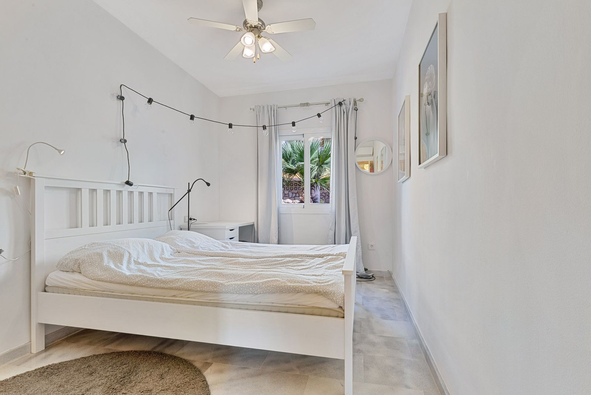 À l'étage, on trouve trois chambres avec placards intégrés et deux salles de bains avec douche, dont une attenante. Au niveau supérieur se trouve une quatrième chambre avec toilettes et lavabo. Cet espace était auparavant une terrasse ouverte aménagée par l'ancien propriétaire. Une partie de la terrasse est encore accessible et offre un espace pour un barbecue et une table à manger. De là, on bénéficie d'une vue sur la mer et les environs.