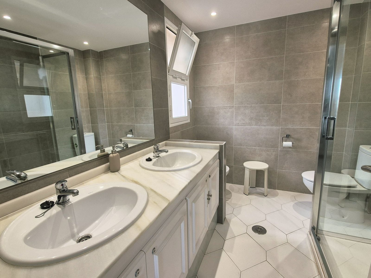L'appartement comprend trois chambres spacieuses, toutes dotées de placards intégrés et de matelas neufs. La chambre principale dispose d'une élégante salle de bains privative avec double vasque et grande douche à l'italienne. Les deux salles de bains ont été rénovées avec goût et présentent des finitions modernes.