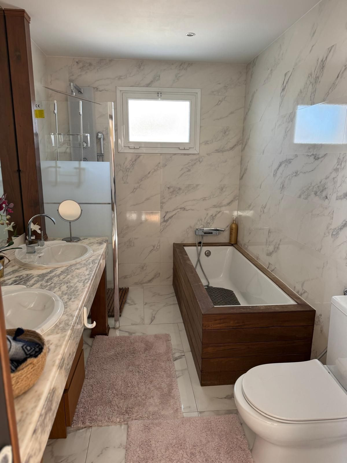 À l'extérieur, la villa dispose d'un jardin privé avec piscine, d'un espace détente et de grandes terrasses, idéales pour profiter du climat méditerranéen toute l'année.