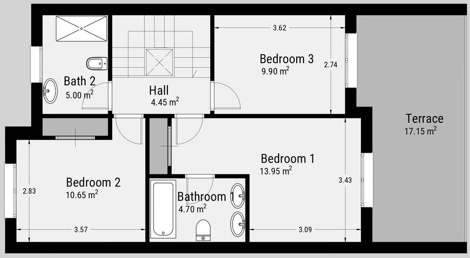 À l'étage, vous trouverez une suite parentale avec salle de bains privative, ainsi que deux chambres d'amis partageant une salle de bains familiale. Depuis la grande terrasse exposée plein sud, profitez d'une vue imprenable sur la mer et d'un ensoleillement optimal tout au long de la journée.