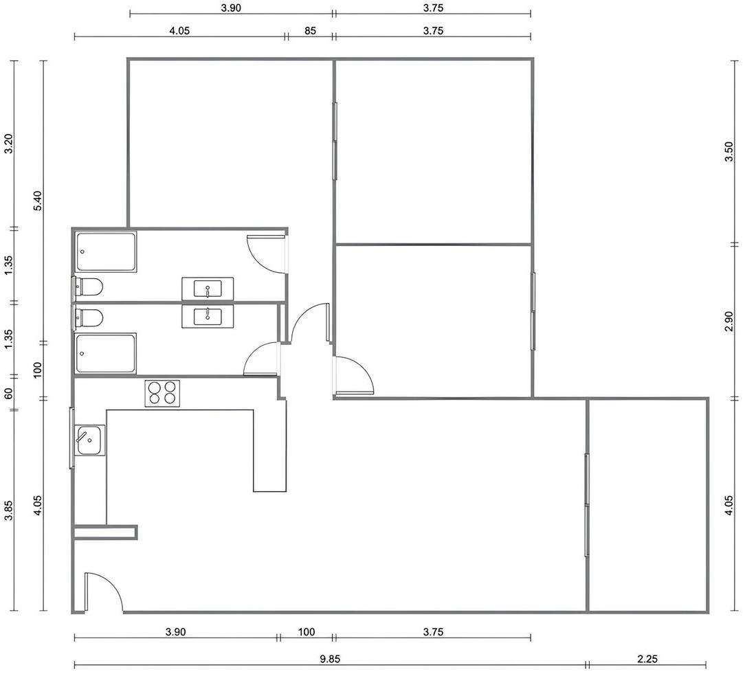 La propriété a une superficie de 98 m² répartie comme suit :