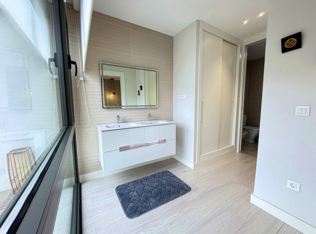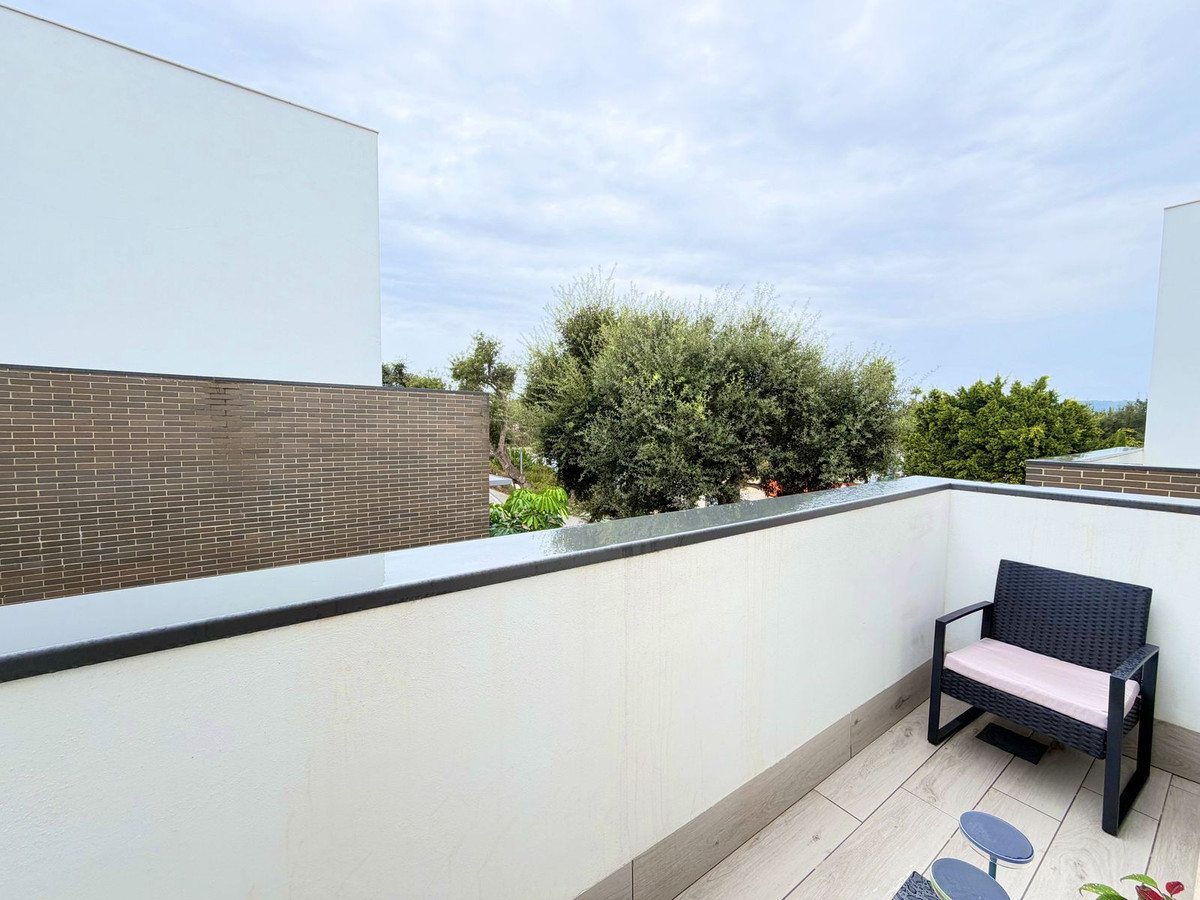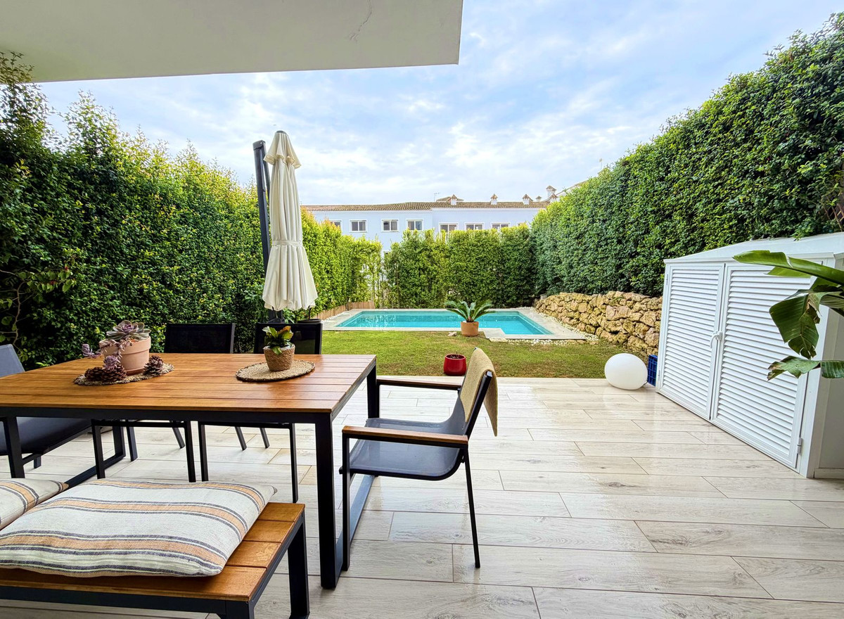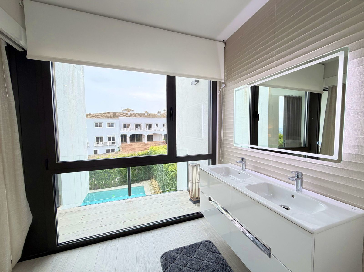 Maison de ville contemporaine située dans le prestigieux San Roque Club sur la Costa del Sol. Cette propriété allie design moderne, finitions haut de gamme et cadre naturel privilégié, ce qui en fait un choix idéal comme résidence principale ou investissement. La maison se distingue par ses volumes généreux, sa luminosité naturelle et son agencement fonctionnel. Le séjour ouvert, équipé de stores électriques et de grandes baies vitrées, donne sur une terrasse privative offrant une vue imprenable sur le golf, la mer et les jardins communs. La cuisine moderne et entièrement équipée apporte élégance et praticité à l'espace. La maison dispose de 3 chambres avec possibilité d'en aménager une quatrième, toutes dotées de placards intégrés et de finitions de haute qualité. La suite parentale comprend une salle de bains privative et un accès à une terrasse privée. Ce niveau comprend également un grand solarium offrant une vue imprenable sur le golf, la mer, les montagnes et le paysage naturel environnant. La maison est équipée d'un système aérothermique de pointe, garantissant une efficacité énergétique et un confort optimaux toute l'année. Cette maison de ville fait partie d'une résidence sécurisée 24h/24 avec jardins magnifiquement entretenus et piscine commune. Le San Roque Club offre tranquillité, intimité et exclusivité, à proximité de Sotogrande, des plages, des écoles internationales et de nombreux services. Une visite est vivement recommandée à ceux qui recherchent une qualité de vie exceptionnelle, un design soigné et un cadre de vie résidentiel raffiné dans l'un des quartiers les plus prisés du sud de l'Espagne.