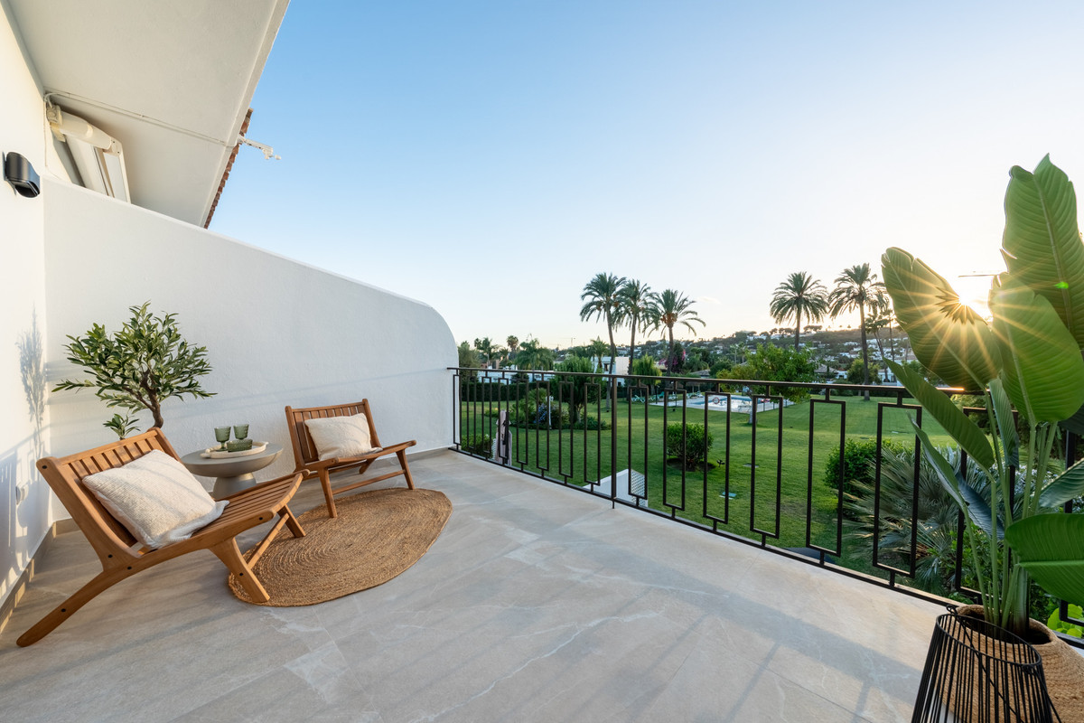Découvrez une sophistication sans effort dans cette maison de ville de 4 chambres récemment rénovée, nichée au sein de la communauté fermée et exclusive de La Rinconada, au cœur de la Vallée du Golf de Marbella.