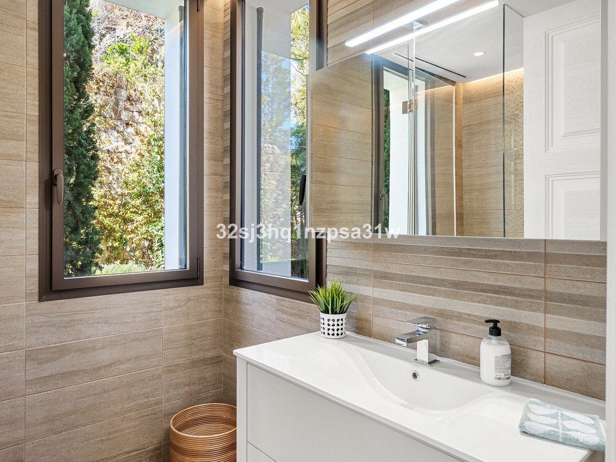 Ce chef-d'œuvre architectural, d'une élégance raffinée, se compose d'un rez-de-chaussée, d'un premier étage et d'un sous-sol. Il impressionne par ses vastes et lumineux espaces de vie et de réception, sa cuisine moderne et élégante entièrement équipée, ses 298 m² de terrasses, ses 9 suites avec salles de bains privatives, sa cave à vin et sa salle de jeux. Outre ces espaces, la maison comprend également une buanderie, un cellier, un dressing, deux toilettes invités et une salle de bains complète pour le personnel de maison. De grandes baies vitrées et des portes vitrées laissent entrer la lumière naturelle dans toute la maison. Les pièces s'ouvrent sur de magnifiques terrasses, un jardin subtropical aux pelouses luxuriantes, des espaces paysagers et une terrasse ensoleillée. Une superbe piscine de 12 x 6 mètres, équipée d'un système de filtration au sel marin, vous invite à vous rafraîchir lors des chaudes journées d'été ou à organiser des réceptions mémorables tout au long de l'année. La région de Marbella est réputée pour son climat, considéré comme le meilleur d'Europe continentale, et votre piscine est chauffée. Un pavillon de jardin vitré et un espace détente complètent une cuisine entièrement équipée, idéale pour les barbecues et les repas en plein air. Un garage privé peut accueillir quatre de vos voitures. Cette villa contemporaine haut de gamme incarne l'art de vivre luxueux et est proposée à la vente avec de nombreux équipements, dont un ascenseur, du parquet, un chauffage au sol et la climatisation dans toute la villa, des placards intégrés, un éclairage LED, et bien plus encore. La palette de couleurs neutres crée une atmosphère d'une grande sérénité. Ultramodernité et détente se conjuguent harmonieusement dans cette propriété de luxe, alliant avec brio l'élégance méditerranéenne et la fonctionnalité.