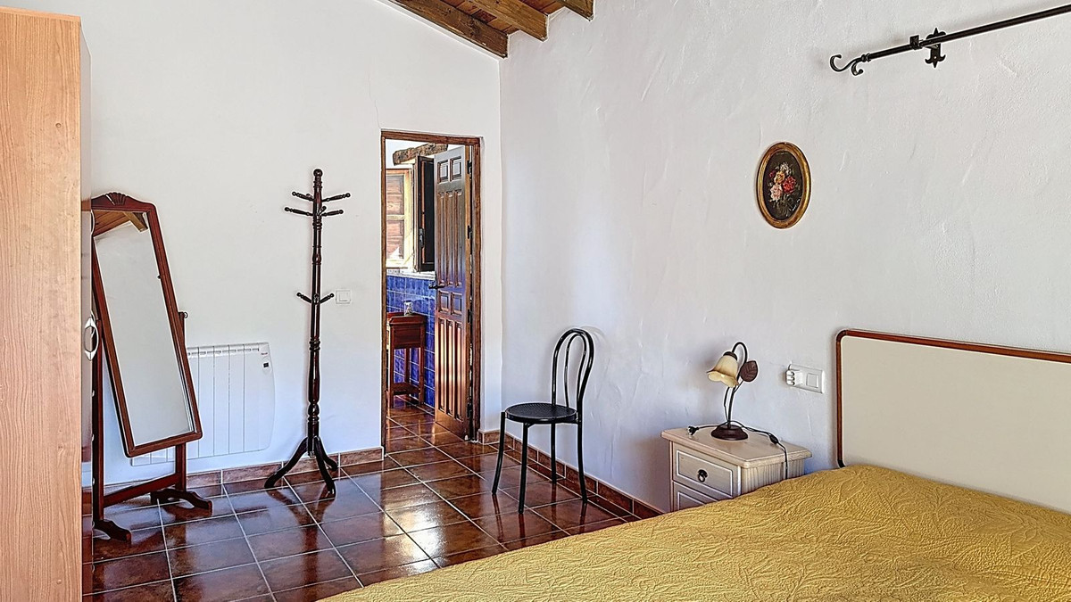 Cette charmante maison espagnole de plain-pied se situe à seulement neuf minutes en voiture d'Almáchar. La route d'accès est majoritairement goudronnée, les quatre derniers kilomètres se faisant sur un chemin de terre bien entretenu. À votre arrivée, une terrasse couverte, ornée de bougainvilliers éclatants, vous accueille et offre une vue imprenable sur le paysage montagneux environnant, parsemé de vignes et d'oliviers.