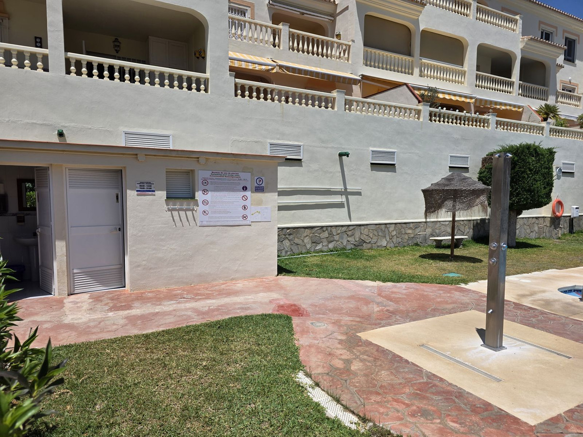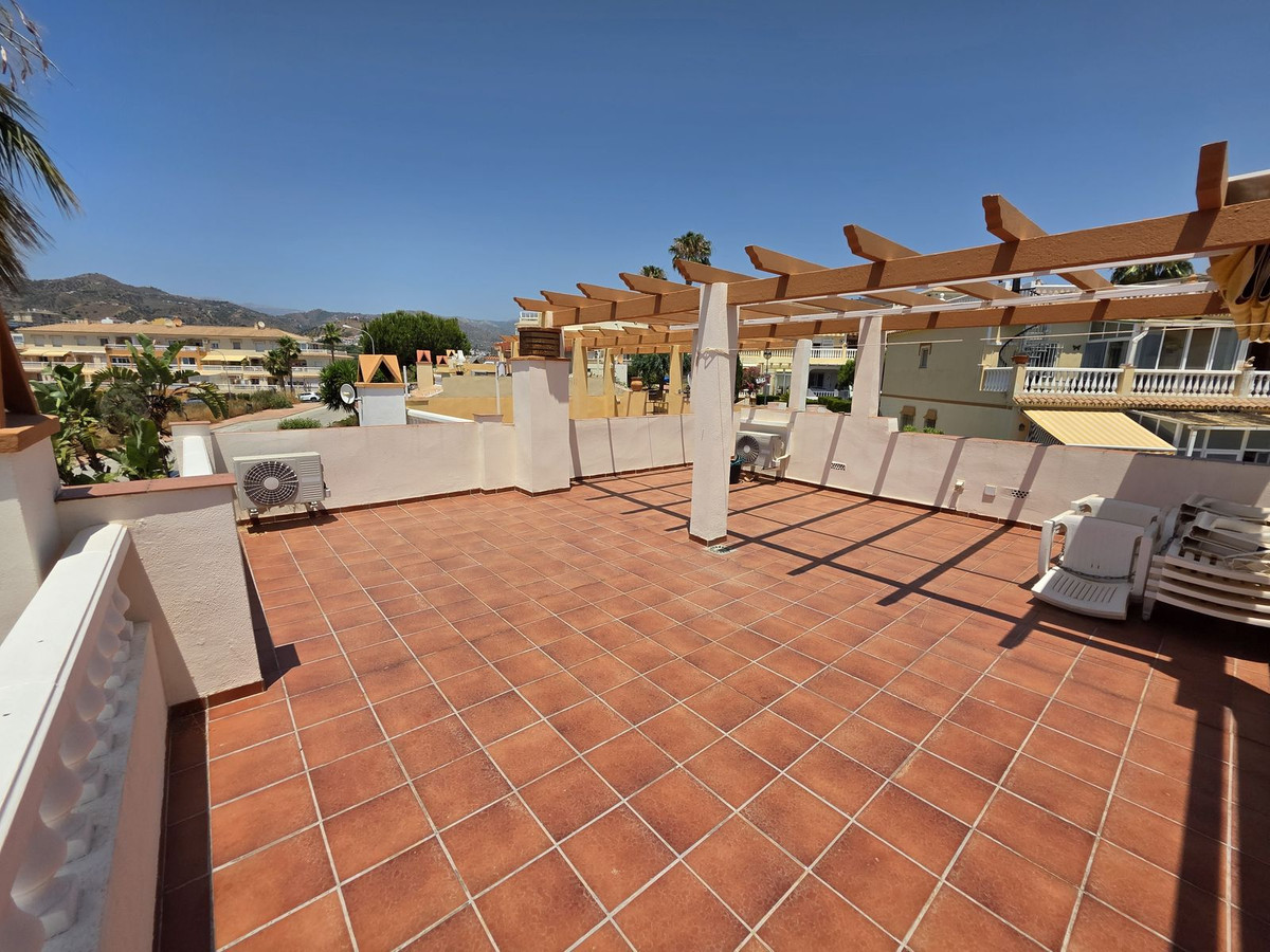 Superbe emplacement pour cette maison de ville à Torrox Costa, à proximité de la plage et de toutes les commodités. Une école publique se trouve également à quelques minutes. La maison dispose d'un patio à l'entrée, d'une grande terrasse à l'arrière et d'une vaste terrasse sur le toit offrant une vue imprenable sur la mer et la côte. Elle comprend deux chambres, une salle de bain complète, une cuisine ouverte entièrement équipée, un coin repas et un grand séjour donnant accès à la terrasse privative et au jardin commun. Orientée sud-ouest, elle bénéficie d'une vue magnifique sur la côte. Cette maison fait partie de la résidence Torrox Park, qui propose des jardins et une grande piscine. À environ 30 minutes de l'aéroport et du centre-ville de Malaga et à seulement 10 minutes du célèbre village de Nerja. La surface habitable se répartit comme suit : 70 m² habitables, 16 m² de terrasse, 55 m² de terrasse sur le toit et 4 m² d'escalier.