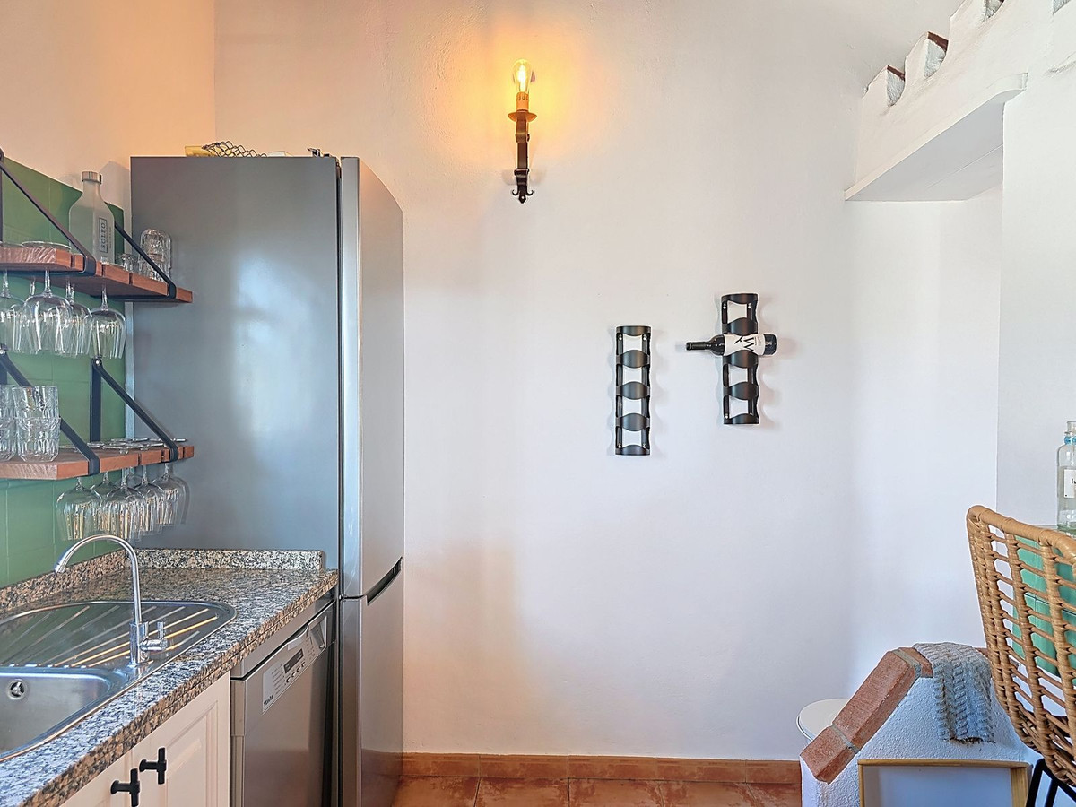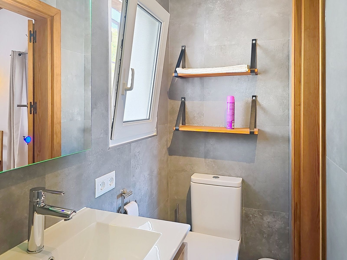 La propriété comprend trois chambres doubles spacieuses, chacune dotée de rangements intégrés et offrant une vue sur la campagne environnante. L'une des chambres bénéficie d'une salle de bains privative, pour plus d'intimité et de confort. Une seconde salle de bains familiale, ornée de carreaux andalous traditionnels et d'équipements modernes, offre un espace lumineux et fonctionnel, aussi bien pour les résidents que pour leurs invités.