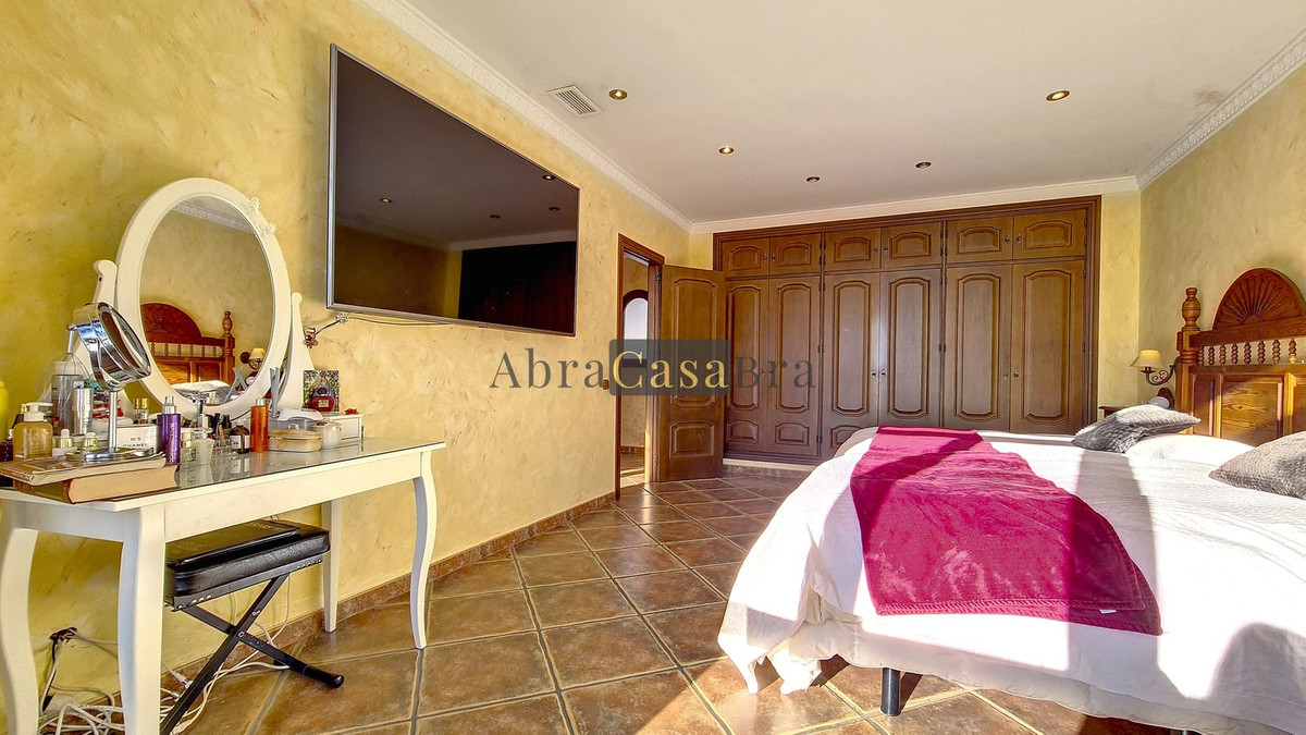 La magnifique chambre principale, dotée de placards intégrés, est très spacieuse et offre une vue imprenable sur les montagnes et la mer au loin. Elle comprend deux lits doubles.