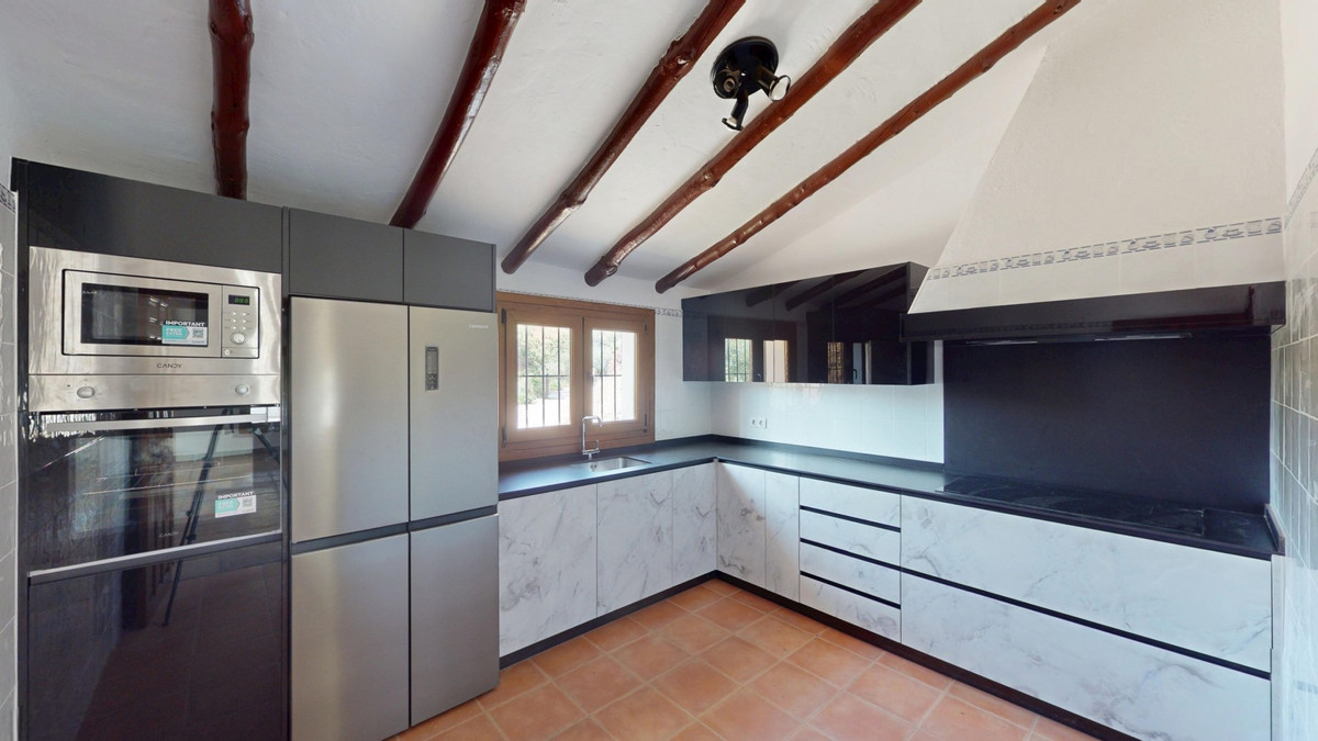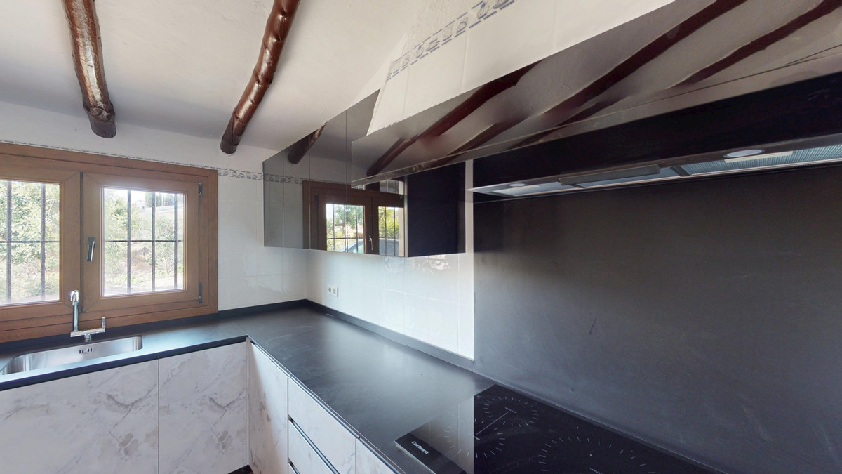 Cette ravissante villa espagnole, située à Viñuela, dans la province de Malaga, offre un parfait mélange de charme traditionnel et de confort moderne. De plain-pied, elle s'étend sur 167 m² et comprend trois chambres, dont une spacieuse suite parentale de 13,9 m², ainsi que deux salles de bains. Dès l'entrée, on est séduit par son atout majeur : un magnifique sol en terre cuite qui s'étend sur toute la surface, créant une ambiance espagnole authentique et harmonieuse. Les pièces à vivre se caractérisent par leurs hauts plafonds mansardés aux poutres apparentes, qui ajoutent une touche rustique et un cachet unique. Le cœur de la maison est sans conteste le salon, dont la pièce maîtresse est une superbe cheminée en pierre. De grandes fenêtres et des portes-fenêtres, présentes dans cette pièce comme dans les chambres, laissent entrer une abondante lumière naturelle tout en offrant des vues pittoresques sur le paysage environnant. La cuisine présente un mélange harmonieux de design traditionnel et contemporain. Les appareils électroménagers modernes et les élégants meubles contrastent avec les poutres apparentes du plafond, créant un espace culinaire à la fois fonctionnel et esthétique. Les salles de bains, bien que peu détaillées sur les photos, semblent avoir été modernisées. Des rangements astucieusement intégrés sont présents dans toute la maison, notamment des placards en bois encastrés dans les chambres qui préservent le charme rustique de l'ensemble. La propriété dispose également de deux patios, offrant de ravissants espaces extérieurs pour la détente et les réceptions. L'un des atouts de cette villa réside dans le soin apporté aux détails décoratifs, tels que les frises de carrelage ornementées dans les couloirs et les salles de bains, qui ajoutent une touche d'élégance espagnole traditionnelle à des intérieurs par ailleurs sobres et raffinés. À l'extérieur, la villa bénéficie d'une magnifique piscine et d'un charmant espace extérieur, idéal pour profiter du climat méditerranéen. En somme, cette villa de Malaga offre une atmosphère chaleureuse et accueillante, alliant avec brio les éléments architecturaux espagnols traditionnels au confort moderne, pour créer un lieu de vie exceptionnel. Nous sommes ravis de pouvoir vous présenter prochainement cette propriété de rêve, en personne ou par visite virtuelle. Car ce monde est unique, à l'image de notre Axarquía. En Andalousie. Sur la Costa del Sol. Ici, sous le soleil…