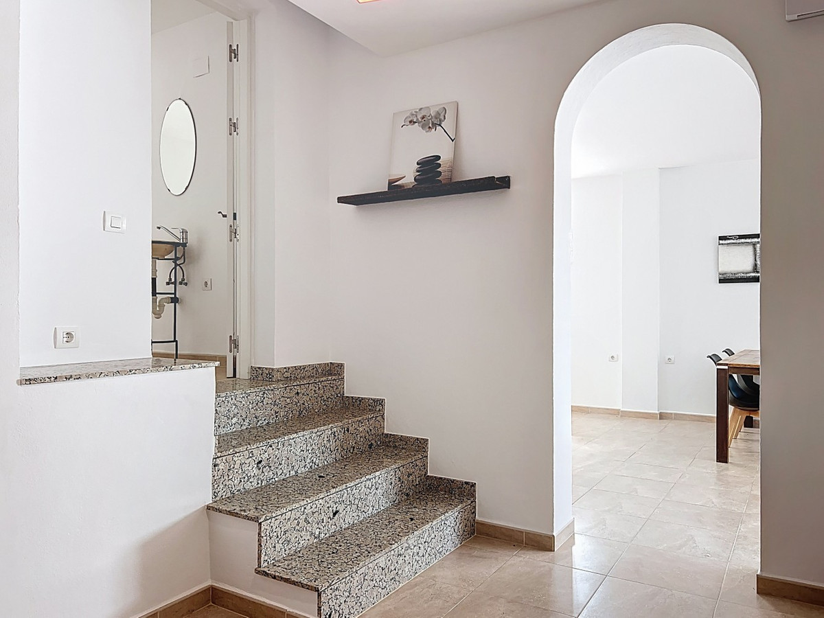 Cette charmante maison de deux étages à Caleta de Vélez offre 169,38 m² habitables et 220 m² construits, terrasses comprises, dans un emplacement privilégié avec vue sur la mer et piscine. Son design allie le charme méditerranéen au confort moderne, idéal pour profiter pleinement de la douceur de vivre de la Costa del Sol. Le rez-de-chaussée (87,21 m²) comprend un espace de vie lumineux et ouvert avec salle à manger, donnant directement sur l'extérieur grâce à de grandes baies vitrées et une porte-fenêtre. Ce niveau comprend également trois chambres, une salle de bain complète et des rangements intégrés, le tout dans des tons clairs et chaleureux qui mettent en valeur la lumière naturelle. L'étage (69,89 m²) poursuit cette harmonie et comprend deux autres chambres, une salle de bain supplémentaire, un salon cosy avec cheminée et un accès à une terrasse avec vue imprenable sur la mer, idéale pour se détendre ou recevoir. Le sol mêle parquet clair et carrelage, et la lumière naturelle inonde toute la maison. Des couleurs neutres et des touches artistiques raffinées confèrent à chaque pièce du caractère sans surcharger l'espace. Cette propriété polyvalente est idéale comme résidence principale ou secondaire, située dans l'un des quartiers les plus paisibles et prisés de la côte de Malaga. Nous sommes ravis de pouvoir vous présenter prochainement ce bien d'exception, en personne ou par visite virtuelle. Car ce monde est unique, à l'image de notre Axarquía. En Andalousie. Sur la Costa del Sol. Ici, la vie est belle et ensoleillée…