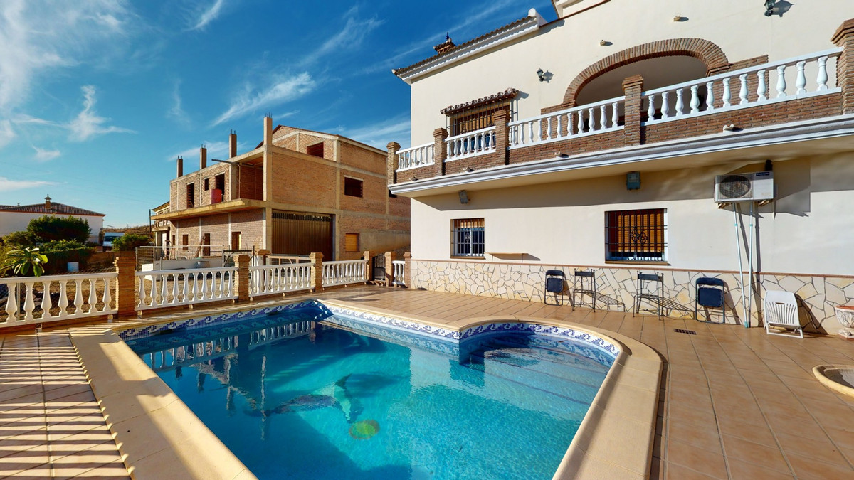 Cette spacieuse villa, idéalement située, offre la possibilité à deux familles de vivre séparément. Le garage de 217 m² peut accueillir 5 voitures et comprend un bureau et un espace de rangement. Accès au jardin avec une belle piscine, une douche, des arbres fruitiers et un poulailler. Une pièce indépendante abrite une cuisine/barbecue supplémentaire et une terrasse couverte. Le rez-de-chaussée de 216 m² comprend un hall d'entrée, un vaste séjour, une grande cuisine attenante entièrement équipée, un cellier et une grande terrasse extérieure. Trois salles de bains, trois chambres avec placards intégrés et climatisation réversible. Une buanderie peut être aménagée en chambre. L'étage de 159 m² comprend un séjour avec haut plafond, une cuisine entièrement équipée avec cellier, une buanderie, une salle de bains et une terrasse extérieure. Construite avec des matériaux de grande qualité et selon des standards très élevés, la maison a été réalisée par le propriétaire lui-même. Nous serions ravis de vous présenter prochainement cette propriété de rêve, en personne ou par visite virtuelle. Car ce monde est unique, à l'image de notre Axarquía. En Andalousie. Sur la Costa del Sol. Ici, sous le soleil…