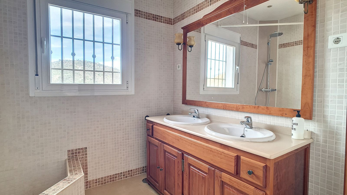 La villa comprend un séjour (coin salon et salle à manger) avec cuisine ouverte. Au rez-de-chaussée, elle offre deux chambres spacieuses, chacune avec sa propre salle de bains, ainsi qu'un cellier équipé d'un lave-linge et d'un espace de rangement pour le linge de maison. Un bel escalier dans le séjour mène au premier étage qui abrite une suite parentale spacieuse avec coin salon et espace détente, salle de bains privative avec baignoire/douche et dressing. La terrasse offre une vue imprenable sur les montagnes environnantes et la mer.