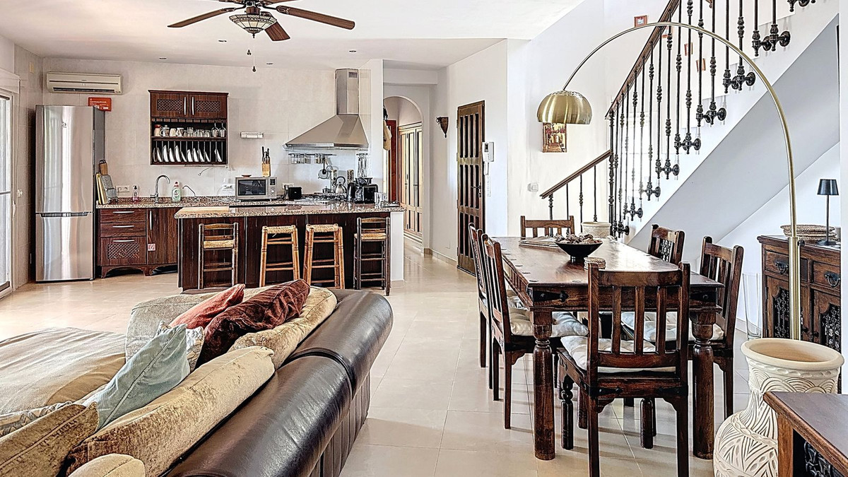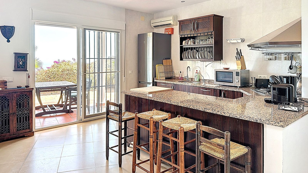 Vous rêvez d'une vie sous le soleil espagnol, au calme, dans l'espace et avec un confort absolu ? Cette villa lumineuse et élégante, située entre Vélez-Málaga et le charmant village d'Arenas, vous offre précisément cela. Avec une vue panoramique sur la vallée verdoyante et la Méditerranée scintillante, vous profiterez chaque jour du meilleur de l'Andalousie. De larges baies vitrées coulissantes dans le salon, la salle à manger et la cuisine américaine moderne inondent l'intérieur de lumière naturelle et s'ouvrent directement sur la terrasse couverte, où la vie en extérieur se prolonge harmonieusement dans le confort intérieur. Le salon accueillant, avec sa cheminée, crée une ambiance chaleureuse lors des soirées plus fraîches, tandis que la climatisation assure un climat agréable toute l'année.