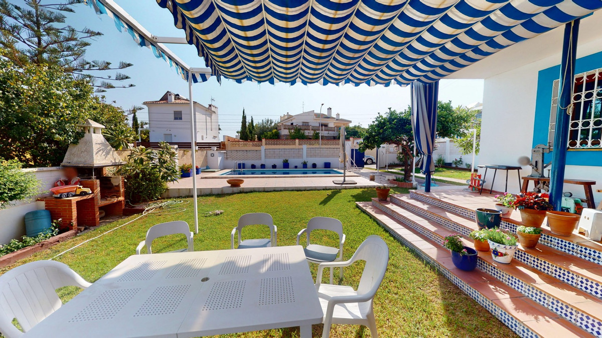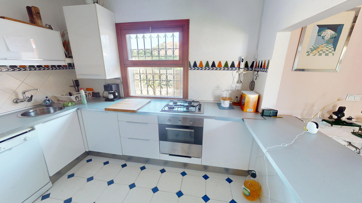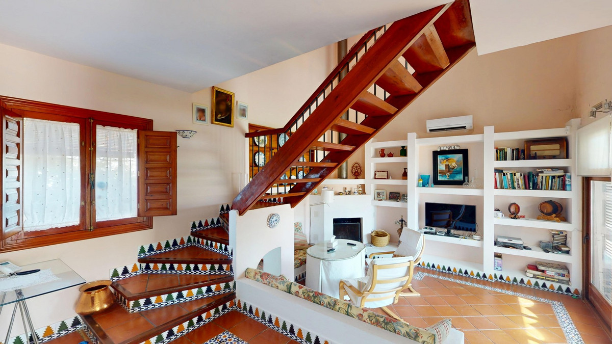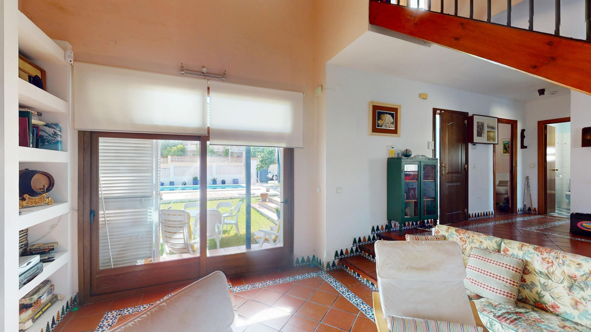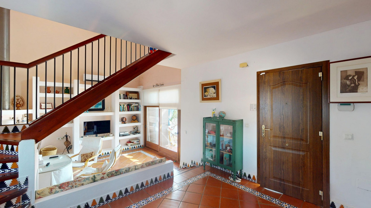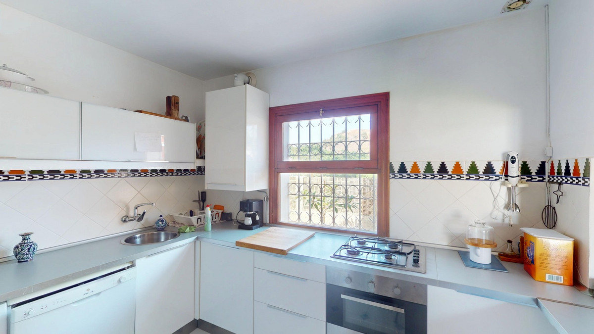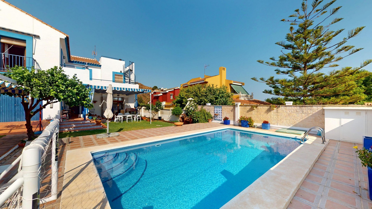 Cette magnifique villa espagnole s'étend sur deux étages et comprend trois chambres, dont une suite parentale impressionnante, et deux salles de bains. Elle allie le charme andalou traditionnel au confort moderne. Son design d'inspiration méditerranéenne se reflète dans les sols en terre cuite, les chaleureux éléments en bois et les espaces lumineux et aérés. Le séjour bénéficie d'une configuration unique en demi-niveaux avec des frises de carrelage décoratives, une cheminée accueillante et des étagères intégrées. Un élégant escalier en bois mène à l'étage, tandis que la cuisine ouverte communique harmonieusement avec le séjour, idéale pour la vie de famille ou pour recevoir. Les chambres sont spacieuses et disposent de placards intégrés pour un rangement optimal. De grandes fenêtres avec volets en bois traditionnels laissent entrer la lumière naturelle et offrent des vues pittoresques sur les environs. Les salles de bains sont pleines de caractère, l'une d'elles étant dotée d'un sol à damier bleu et blanc avec des frises de carrelage décoratives. À l'extérieur, la villa offre un jardin privé avec piscine, un espace détente idéal pour se relaxer, un garage et une terrasse sur le toit avec une vue imprenable, parfaite pour profiter du climat et des paysages de la Costa del Sol. Située à Chilches, cette propriété est idéale comme résidence principale, résidence secondaire ou investissement locatif. Nous sommes ravis de pouvoir vous présenter prochainement ce bien d'exception, en personne ou virtuellement. Car ce monde est unique, à l'image de notre Axarquía. En Andalousie. Sur la Costa del Sol. Ici, la vie est belle et ensoleillée…